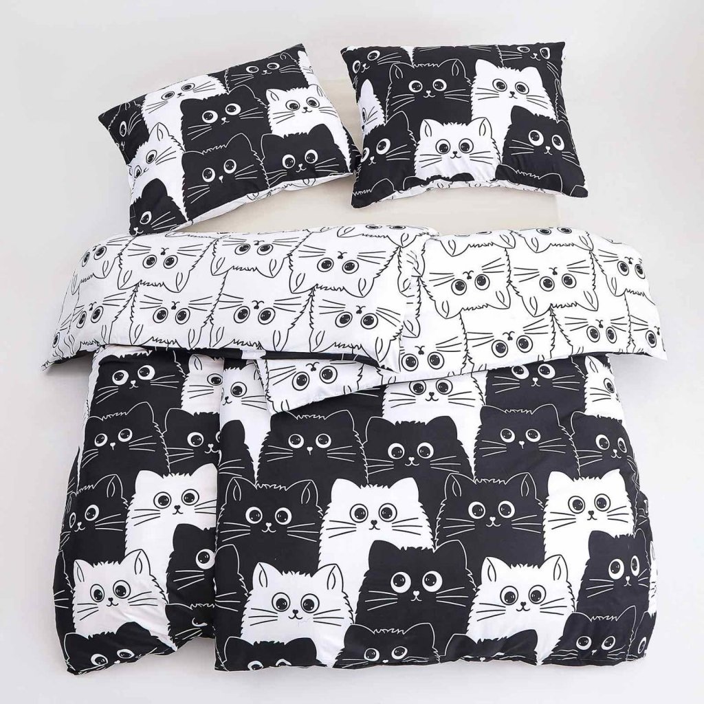 Bavlněné povlečení Kočky černobílé 140x200, 70x90 cm