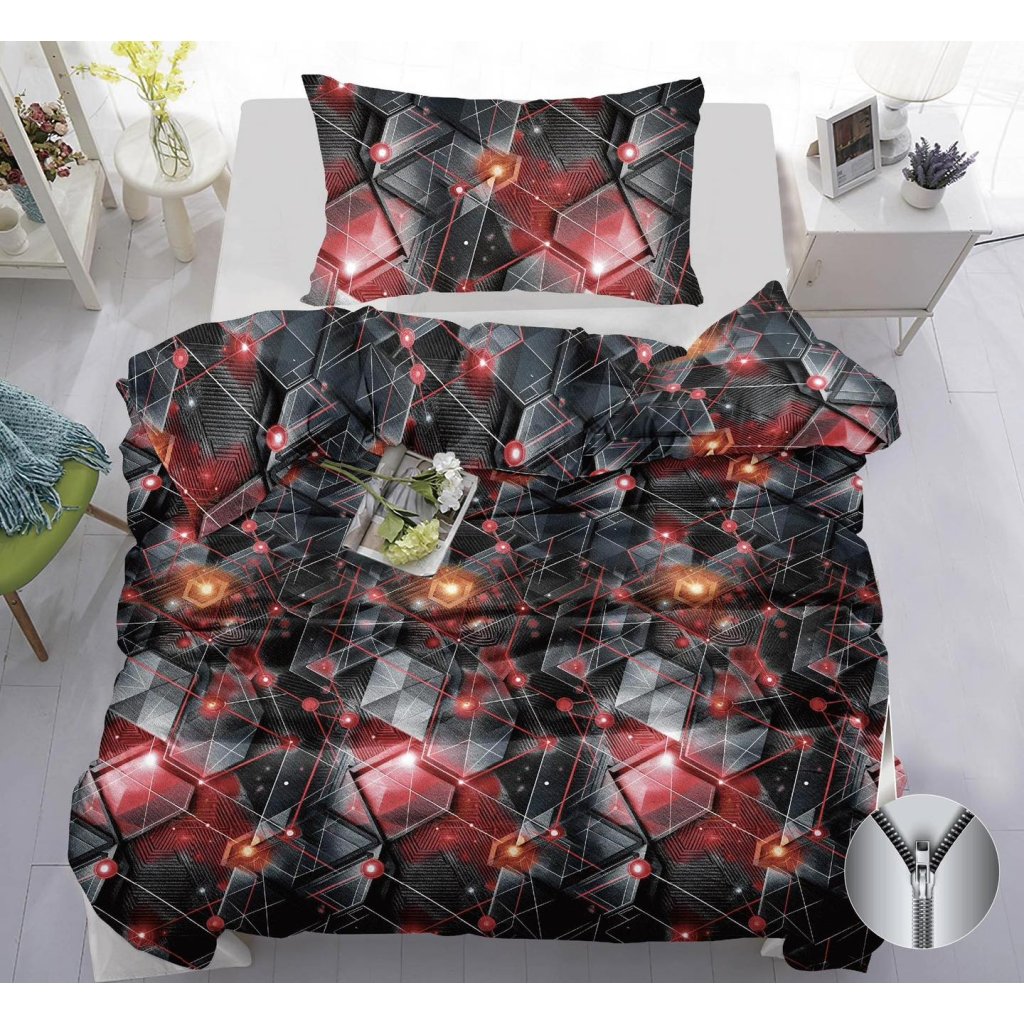 Bavlněné povlečení Red geometry 140x200, 70x90 cm