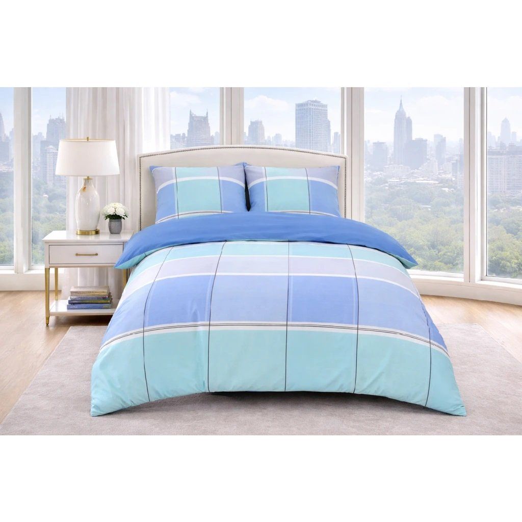 Bavlněné povlečení Tyrkysovo-modré čtverce 140x200, 70x90 cm