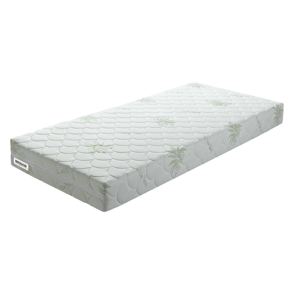 Extra pohodlná matrace Flora Bio Plus od renomovaného slovenského výrobce Benab z elastické Bio pěny a HR pěny se speciálním odvětrávacím systémem, který zabraňuje přehřátí organismu, a tím zvyšuje komfort během spánku. Výška matrace Flora Bio Plus je 16 cm. Tvrdost je střední H3 / tvrdá H4. Na matraci Flora Bio Plus je 3 roky záruka. Nosnost matrace Flora Bio Plus je 120 kg.matrace rozdílné tuhosti s použitím přírodní kokosové vrstvydoporučený rošt lamelovýstandardní vyhotovení v potahu - Aloe VeraBIO pěna 40 kg/m3, PUR pěna 28 kg/m3, HR 38 kg/m3, kokosová vrstva 1300 gr/m2Potah Aloe VeraPotahová látka s výtažky z rostliny Aloe Vera obsahuje převážně enzymy, minerální látky a aminokyseliny, které velmi pozitivně působí na pokožku a posilují relaxační účinky spánku. Příjemně měkký se schopností regenerace pokožky lidského těla, vlastnosti této látky zaručují dostatečnou hygienu. Certifikovaný a zdravotně nezávadný OEKO-TEX standard. Složení: 85 % polyester; 15 % viskóza, obohacený o výtažky z Aloe Vera. Potah prošitý s klimatizační výplní, PES vláknem 250 gr/m2. Potah je antibakteriální, antiroztočový, odzipovatelný a pratelný do 60°C.O matracích BenabMatrace Benab jsou na slovenském a českém trhu už od roku 1998, kdy továrna pod Tatrami začala vyrábět perfektní matrace pro domácnosti, nemocnice, domy pro seniory i hotelová zařízení. Posláním každého produktu Benab je garantovat každému člověku v domácnosti zdravý spánek, pomáhat nemocným v jejich léčení a osobám na cestách a na dovolených dopřát pohodlný oddych.Benab nabízí široký sortiment matrací – od ekonomických, přeskomfortní až po špičkové inovativní matrace, konkurující světoznámým značkám, které jsou symbolem luxusu. Pružinové a hybridní matrace Benab jsou skvělým příkladem špičkové technologie, know-how a zručnosti zaměstnanců.Doplňkové parametry