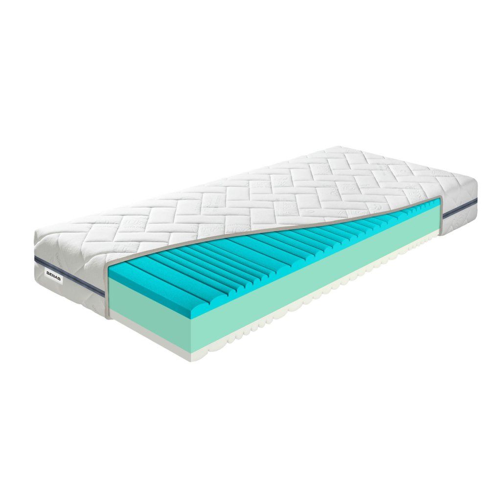 Hledáte-li ideální párovou matraci, ale nemůžete se dohodnout na tvrdosti, pak matrace Benab King SeniorComfort 23 Visco rozpor vyřeší. Z jedné strany luxusní paměťová pěna a z druhé strany zdravá moderní HR pěna. K tomu špičkové 7 zónové bio jádro. Jedna matrace a super spokojení budete oba.Benab King SeniorComfort 23 Visco je oblíbená komfortní ortopedická partnerská matrace v bioverzi. Matrace je složená z perforované ventilační Bio pěny v kombinaci s vysoce kvalitní Visco paměťovou pěnou se 7 zónovou profilací a HR studenou pěnou. Průřez ložných vrstev a perforace Bio jádra umožňuje dokonalé provzdušnění, optimální regeneraci organismu a zajišťuje uvolnění svalstva během spánku. Bio pěna jádra matrace Benab King SeniorComfort 23 Visco patří mezi moderní pěny a je zdokonalená přidáním přírodních olejů zvyšujících jej jemnost a vláčnost. Visco pěna s paměťovým efektem reaguje na teplo a tlak a optimálně se přizpůsobí křivkám vašeho těla a tím uvolňuje svalstvo a klouby. Benab King SeniorComfort 23 Visco je matrace s vynikající elasticitou a tvarovou stálostí, dvojí tuhosti, a proto je doporučená nejen pro páry s váhovým rozdílem. Doporučený rošt je lamelový .Konstrukce matrace Benab King SeniorComfort 23 ViscoModrá 7 zónová ložná vrstva z paměťové Visco o hustotě 52 kg/m³ a výšce 2 až 4 cm,7 zónově perforované zelené 13 cm vysoké jádro matrace z BIO pěny o hustotě 40 kg/m³,bílá 7 zónová ložná vrstva z HR pěny o hustotě 40 kg/m³ a výšce 2 až 4 cm.Matrace je lepena technologií HotMelt - eko lepení známé jako tavné lepidlo. Používá se i v potravinářství. Tento způsob je ekologický, absolutně bez zápachu a lepený spoj ani po letech neztrácí svou pevnost. Certifikát ECOPASS o zdravotní nezávadnosti.Potah Algua SpirulinaPotah s výtažky z mořských řas Spirulina. Obsahuje přírodní vitamíny, minerály a aminokyseliny. Během spánku dochází k uvolňování těchto látek a působí blahodárně na lidskou pokožku. Potah má antibakteriální, antimykotické vlastnosti - zabraňuje tvorbě a růstu plísní. Vlastnosti potahu Algua Spirulina zaručují vynikající hygienu. Certifikovaný a zdravotně nezávadný OEKO-TEX standard. Odzipovatelný a pratelný do 60 °C.Složení: 30% viskóza, 70% polyester, úprava Spirulina Finish, zónově prošitý s klimatizační výplní, PES vláknem 300 gr/m².O matracích BenabMatrace Benab jsou na slovenském a českém trhu už od roku 1998, kdy továrna pod Tatrami začala vyrábět perfektní matrace pro domácnosti, nemocnice, domy pro seniory i hotelová zařízení. Posláním každého produktu Benab je garantovat každému člověku v domácnosti zdravý spánek, pomáhat nemocným v jejich léčení a osobám na cestách a na dovolených dopřát pohodlný oddych.Benab nabízí široký sortiment matrací – od ekonomických, přeskomfortní až po špičkové inovativní matrace, konkurující světoznámým značkám, které jsou symbolem luxusu. Pružinové a hybridní matrace Benab jsou skvělým příkladem špičkové technologie, know-how a zručnosti zaměstnanců.Doplňkové parametry