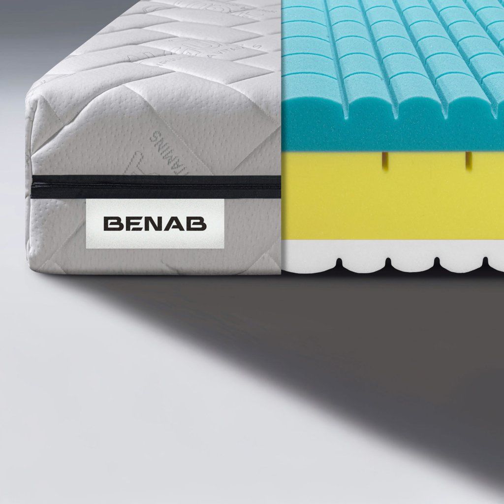 Matrace Benab King SeniorComfort 24 HR Antidecubit poskytne maximální pocit hygieny a vyřeší vaše starosti o vnitřní čistotu matrace během dlouhé životnosti. Je výjimečně pohodlná, příjemná, vyplněná nejmodernějšími pěnami s ideálním zdravotním povrchem a k tomu všemu – vnitřní materiály jsou z hygienického pohledu nejmodernější na světě, využívané standardně v nejlepších nemocnicích.Vysoce komfortní ortopedická matrace Benab King SeniorComfort 24 HR Antidecubit má 7 zónovou jednostrannou antidekubitní profilaci. Jádro matrace je vyrobeno ze speciální antibakteriální pěny Sanitized® kombinací nosných desek z HR studených pěn. Modrá antidekubitně profilovaná strana matrace předchází tvorbě proleženin u osob dlouhodobě připoutaných na lůžko, druhá bílá ložná strana je tvarovaná do masážních nopů v 7 zónách profilace, která zlepšuje prokrvení pokožky a uvolňuje svalstvo během spánku. Obě ložné vrstvy jsou z vysoce kvalitní studené HR pěny. Jádro matrace Benab King SeniorComfort 24 HR Antidecubit s ventilačními otvory z antibakteriální pěny Sanitized® (biocidní látka- zdravotně nezávadná, vhodná i pro děti do 3 let) likviduje baktérie, houby, roztoče, plísně a další nežádoucí mikroorganismy v matraci. Doporučený rošt je lamelový.Konstrukce matrace Benab King SeniorComfort 24 HR AntidecubitModrá 7 zónová antidekubitní deska ze studené HR pěny o hustotě 40 kg/m³ vysoká 7 cm,žluté, 11 cm vysoké perforované 7 zónové jádro z antibakteriální pěny Sanitized® o hustotě 40 kg/m³ ,bílá profilovaná vrstva ze studené HR pěny o hustotě 40 kg/m³ vysoká 4 cm.Matrace je lepena technologií HotMelt - eko lepení známé jako tavné lepidlo. Používá se i v potravinářství. Tento způsob je ekologický, absolutně bez zápachu a lepený spoj ani po letech neztrácí svou pevnost. Certifikát ECOPASS o zdravotní nezávadnosti.Potah Algua SpirulinaPotah s výtažky z mořských řas Spirulina. Obsahuje přírodní vitamíny, minerály a aminokyseliny. Během spánku dochází k uvolňování těchto látek a působí blahodárně na lidskou pokožku. Potah má antibakteriální, antimykotické vlastnosti - zabraňuje tvorbě a růstu plísní. Vlastnosti potahu Algua Spirulina zaručují vynikající hygienu. Certifikovaný a zdravotně nezávadný OEKO-TEX standard. Odzipovatelný a pratelný do 60 °C.Složení: 30% viskóza, 70% polyester, úprava Spirulina Finish, zónově prošitý s klimatizační výplní, PES vláknem 300 gr/m².O matracích BenabMatrace Benab jsou na slovenském a českém trhu už od roku 1998, kdy továrna pod Tatrami začala vyrábět perfektní matrace pro domácnosti, nemocnice, domy pro seniory i hotelová zařízení. Posláním každého produktu Benab je garantovat každému člověku v domácnosti zdravý spánek, pomáhat nemocným v jejich léčení a osobám na cestách a na dovolených dopřát pohodlný oddych.Benab nabízí široký sortiment matrací – od ekonomických, přeskomfortní až po špičkové inovativní matrace, konkurující světoznámým značkám, které jsou symbolem luxusu. Pružinové a hybridní matrace Benab jsou skvělým příkladem špičkové technologie, know-how a zručnosti zaměstnanců.Doplňkové parametry
