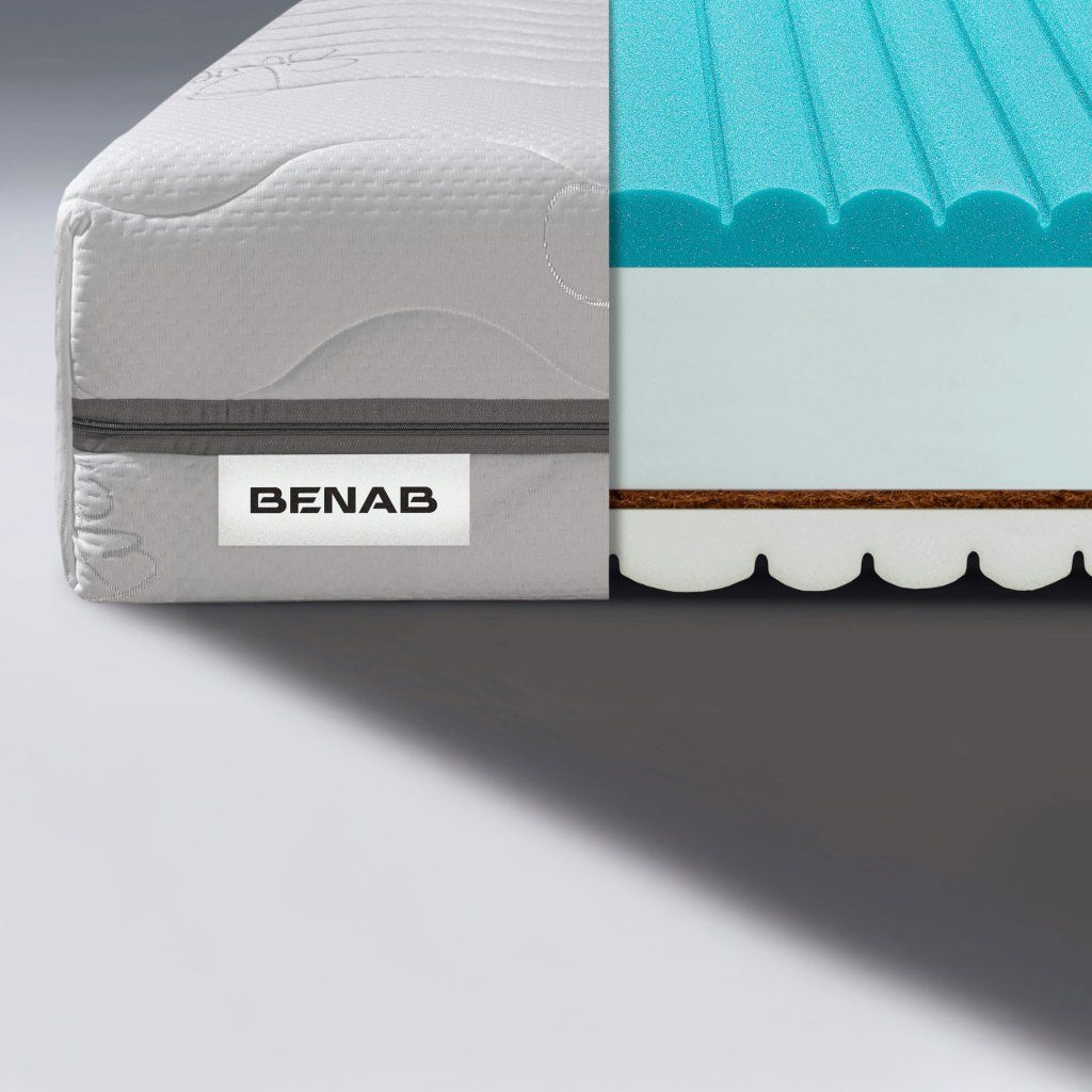 Hledáte-li ideální párovou matraci, ale nemůžete se dohodnout na tvrdosti, pak matrace Benab King Visco 20 HR rozpor vyřeší. Z jedné strany luxusní paměťová pěna a z druhé strany zdravá moderní HR pěna. Jedna matrace a super spokojení budete oba.Matrace Benab King Visco 20 HR je komfortní ortopedická partnerská matrace z kvalitní studené HR pěny se 7 zónovou profilací v kombinaci s profilovanou paměťovou Visco pěnou. Matrace Benab King Visco 20 HR je vyztužena komfortní PUR pěnou a přírodní kokosovou vrstvou z tvrdší strany matrace. Visco pěna s paměťovým efektem reaguje na teplo a tlak a optimálně se přizpůsobí křivkám vašeho těla, a tím uvolňuje svalstvo a klouby. Důmyslný průřez ložných ploch zabezpečuje dokonalé provzdušnění optimální regeneraci organismu během spánku. Matrace Benab King Visco 20 HR poskytuje vynikající elasticitu a tvarovou stálost, díky dvojí tuhosti je vhodná pro páry s váhovým rozdílem. Doporučený rošt je lamelový. Konstrukce matrace Benab King Visco 20 HRMěkší modrá profilovaná 7 zónová vrstva z paměťové Visco pěny o hustotě 52 kg/m³ a výšce 2 až 4 cm,bílé jádro matrace o výšce 10,5 cm z PUR pěny o hustotě 28 kg/m³,kokosová vrstva 1300 gr/m² vysoká 1 cm,tvrdá bílá profilovaná 7 zónová vrstva ze studené HR pěny o hustotě 40 kg/m³ a výšce 3 až 5 cm.Matrace je lepena technologií HotMelt - eko lepení známé jako tavné lepidlo. Používá se i v potravinářství. Tento způsob je ekologický, absolutně bez zápachu a lepený spoj ani po letech neztrácí svou pevnost. Certifikát ECOPASS o zdravotní nezávadnosti. Potah SilverKvalitní a příjemně měkký potah se schopností regenerace pokožky lidského těla. Stříbro je ideální při alergii na prach a při problémech s nadměrným pocením. Má antistatické, antibakteriální a antimykotické vlastnosti, zabraňuje růstu plísní. Vlastnosti tohoto potahu zaručují vynikající hygienu. Certifikovaný a zdravotně nezávadný OEKO-TEX standard. Odzipovatelný a pratelný do 60 °C.Složení: 7% sim, 30% viskóza, 70% polyester, zónově prošitý s klimatizační výplní, PES vláknem 250 gr/m².O matracích BenabMatrace Benab jsou na slovenském a českém trhu už od roku 1998, kdy továrna pod Tatrami začala vyrábět perfektní matrace pro domácnosti, nemocnice, domy pro seniory i hotelová zařízení. Posláním každého produktu Benab je garantovat každému člověku v domácnosti zdravý spánek, pomáhat nemocným v jejich léčení a osobám na cestách a na dovolených dopřát pohodlný oddych.Benab nabízí široký sortiment matrací – od ekonomických, přeskomfortní až po špičkové inovativní matrace, konkurující světoznámým značkám, které jsou symbolem luxusu. Pružinové a hybridní matrace Benab jsou skvělým příkladem špičkové technologie, know-how a zručnosti zaměstnanců.Doplňkové parametry