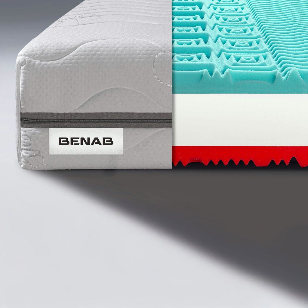 Parádní, funkční a zároveň cenově výhodná matrace Benab Zero Original 19 HR dvou různých tuhostí pro každého, kdo chce rozumné řešení do 5 tisíc Kč. Pod potahem se zdraví přínosnými stříbrnými vlákny je profilovaný povrch, který ti během noci jemně uvolňuje svalstvo. Sendvičová matrace Benab Zero Original 19 HR s oboustrannou 7 zónovou různě tuhou profilací z kvalitních HR a PUR pěn v kombinaci s kvalitním jádrem z PUR pěny pro lepší vyztužení matrace. Matrace Benab Zero Original 19 HR je oboustranná a cenově výhodná. Povrch matrace je oboustranně profilovaný masážními nopy, které zlepšují prokrvení pokožky a uvolňují svalstvo během spánku. Doporučený rošt je lamelový.Konstrukce matrace Benab Zero Original 19 HRTužší světle modrá profilovaná 7 zónová vrstva ze studené HR pěny o hustotě 35 kg/m³ a výšce 2 až 4 cm,bílé jádro matrace o výšce 8,5 cm z PUR pěny o hustotě 28 kg/m³,a měkčí červená profilovaná 7 zónová vrstva z PUR pěny o hustotě 28 kg/m³ a výšce 3 až 5 cm.Matrace je lepena technologií HotMelt - eko lepení známé jako tavné lepidlo. Používá se i v potravinářství. Tento způsob je ekologický, absolutně bez zápachu a lepený spoj ani po letech neztrácí svou pevnost. Certifikát ECOPASS o zdravotní nezávadnosti.Potah SilverKvalitní a příjemně měkký potah se schopností regenerace pokožky lidského těla. Stříbro je ideální při alergii na prach a při problémech s nadměrným pocením. Má antistatické, antibakteriální a antimykotické vlastnosti, zabraňuje růstu plísní. Vlastnosti tohoto potahu zaručují vynikající hygienu. Certifikovaný a zdravotně nezávadný OEKO-TEX standard. Odzipovatelný a pratelný do 60 °C.Složení: 7% sim, 30% viskóza, 70% polyester, zónově prošitý s klimatizační výplní, PES vláknem 250 gr/m².O matracích BenabMatrace Benab jsou na slovenském a českém trhu už od roku 1998, kdy továrna pod Tatrami začala vyrábět perfektní matrace pro domácnosti, nemocnice, domy pro seniory i hotelová zařízení. Posláním každého produktu Benab je garantovat každému člověku v domácnosti zdravý spánek, pomáhat nemocným v jejich léčení a osobám na cestách a na dovolených dopřát pohodlný oddych.Benab nabízí široký sortiment matrací – od ekonomických, přeskomfortní až po špičkové inovativní matrace, konkurující světoznámým značkám, které jsou symbolem luxusu. Pružinové a hybridní matrace Benab jsou skvělým příkladem špičkové technologie, know-how a zručnosti zaměstnanců.Doplňkové parametry
