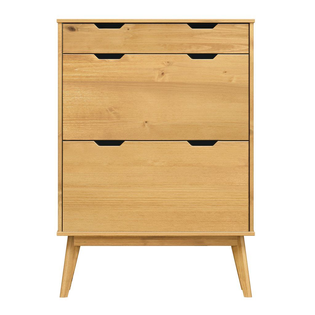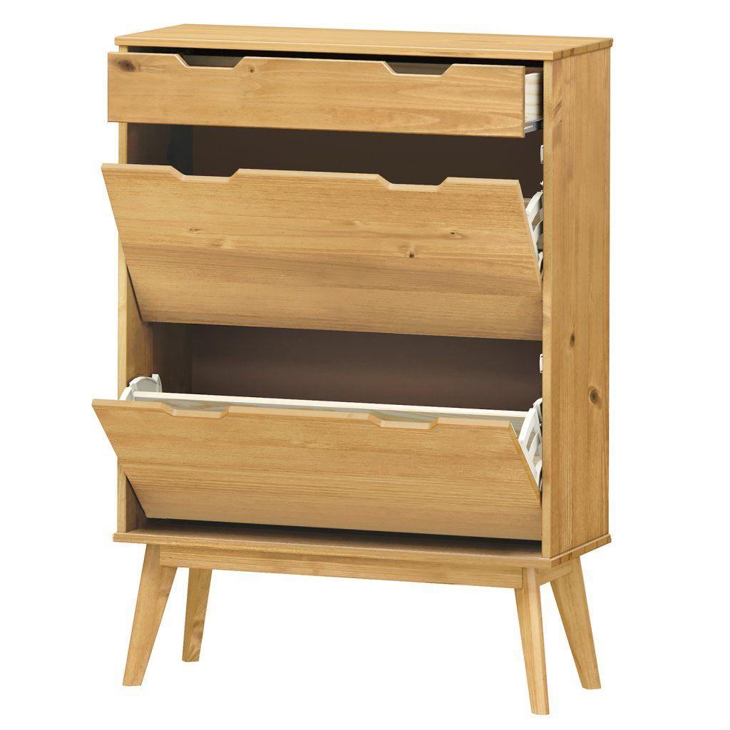 materiál masiv borovice voskovaná v medovém odstínu 1 zásuvka s kovovými pojezdy, 2 dvouřadé výklopyDoplňkové parametry