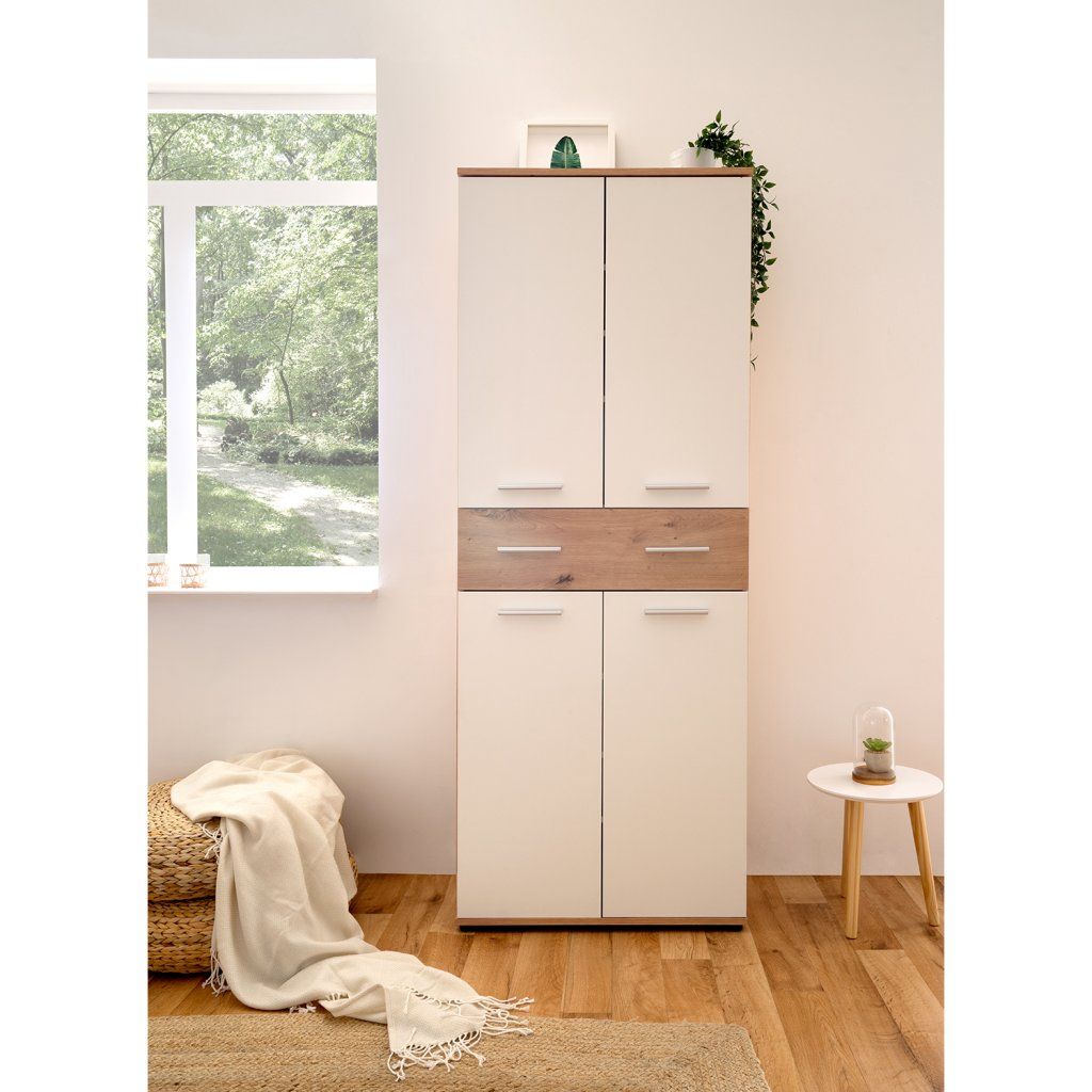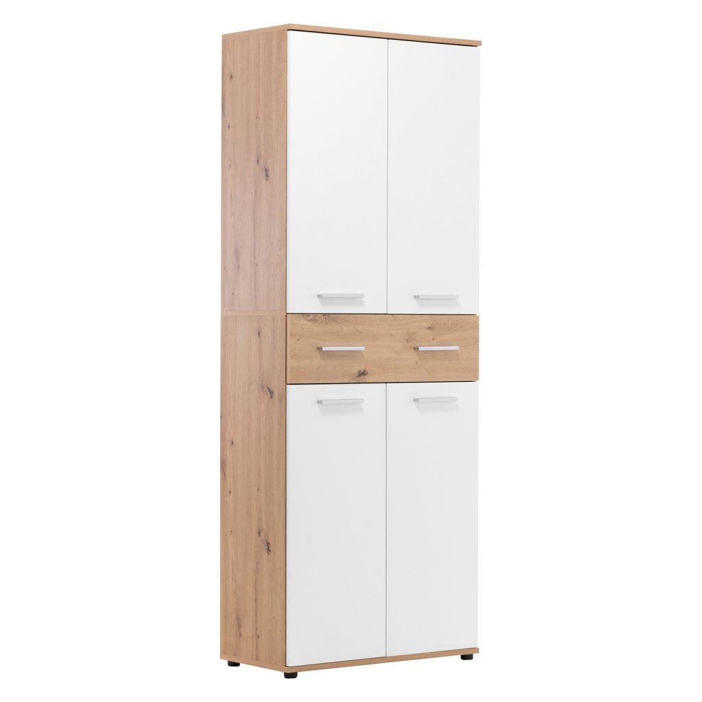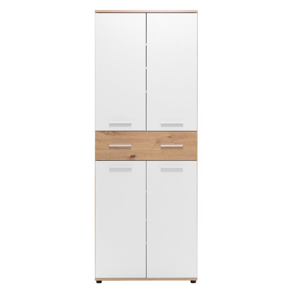 barevné provedení bílá / zlatý dub v horní části 3 variabilní police, v dolní části 3 variabilní police ve střední části zásuvka rozměry některých prvků jsou uvedeny v návodu k montážiDoplňkové parametry