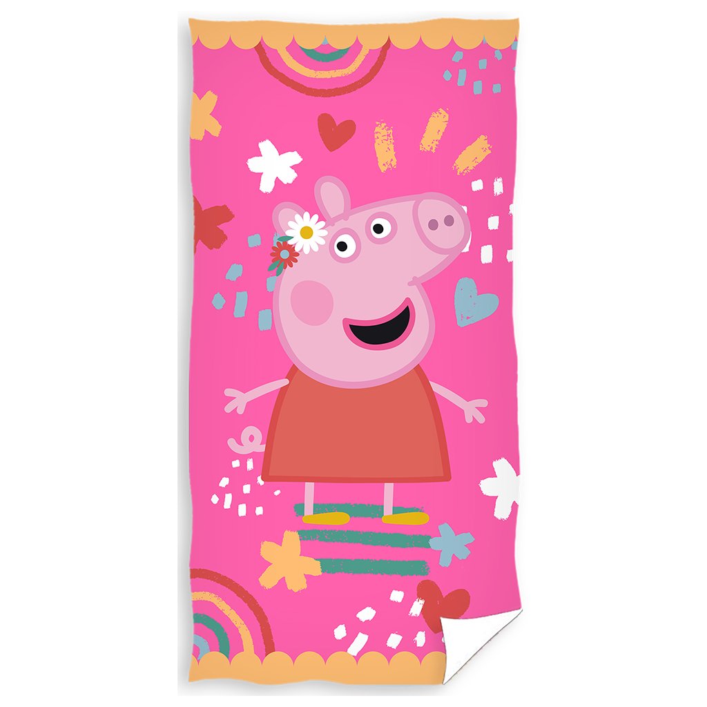 Dětská osuška Prasátko Pepina Barevný Svět, je vyrobena ze 100% bavlny a její rozměry jsou 70x140 cm, s gramáží 300 g/m²