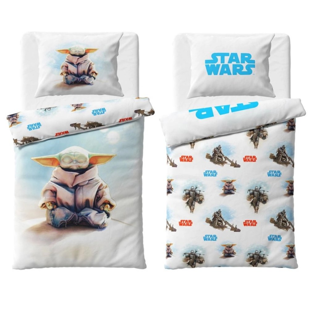 Dětské povlečení Star Wars Baby Yoda je vyrobeno ze 100% hladké bavlny renforce a je oboustranné