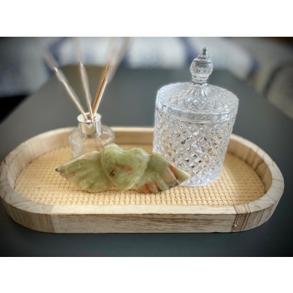 Jedinečná designová dekorace, která díky svému lesku, barevné kresbě a průsvitnosti při prosvícení, navozuje pocit luxusu. Polodrahokam Onyx má také mnoho pozitivních účinků na lidské tělesné i psychické zdraví.