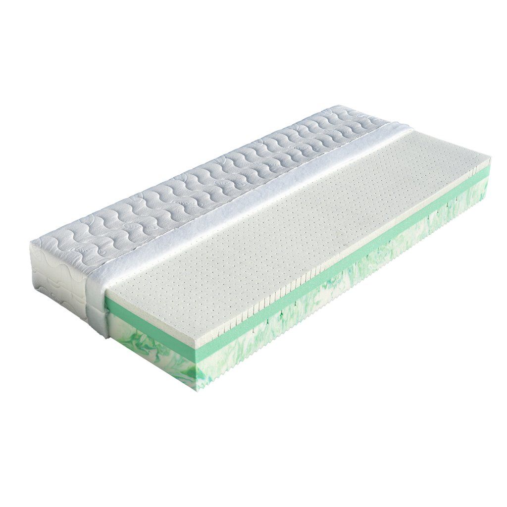 Nosná vrstva matrace Andros firmy Dřevočal, která je označena tuhostí H2, je měkčí a poddajnější díky unikátnímu typu perforovaného Gel-Latexu, který má díky mikro-kapslím speciálního gelu chladivý efekt. Je měkký, tvarově stálý, a díky výborným termoregulačním vlastnostem dobře odvádí vlhkost. Střed jádra tvoří červená antibakteriální pěna s gramáží 32 kg/m³ s úpravou Sanitized®, která poskytuje trvalou a účinnou ochranu proti bakteriím a roztočům. Otočením získáte tvrdší stranu s tuhostí H3 tvořenou odolnou pěnou MediFoam o hustotě 32 kg/m³ se speciálními zářezy ve tvaru Y v místech největšího zatížení (oblast ramen). Matrace Andros se dokonale přizpůsobí křivkám ležícího těla. Matrace je vhodná na všechny typy roštů. Celková výška matrace Andros je 23 cm.Gel-Latex - Unikátní typ perforovaného latexu, který má díky mikro kapslím speciálního gelu chladivý efekt. Má 4x větší počet pórů než klasický latex. Je měkký, tvarově stálý a hypoalergenní, eliminuje výskyt roztočů a plísní. Má jedinečné ortopedické vlastnosti, skvěle se přizpůsobuje tvarům těla a také odvádí vlhkost díky výborným termoregulačním vlastnostem.Pěna MediFoam - Tato vysoce gramážní pěna, která se vyznačuje skvělými ortopedickými vlastnostmi, je vytvořena speciální technologií. Má dokonalou prodyšnost, pružnost, je tvarově stálá a má dlouhou životnost. Zvýšená pórovitost je velmi dobrá k odvádění tepla z matrace, tato pěna tzv. dýchá. Matrace z pěny MediFoam zajišťují ideální uvolnění páteře, kloubů a svalů po dobu Vašeho spánku. Jsou testované a mají certifikát Textilního zkušebního ústavu, s.p. v Brně. Pěna MediFoam je garancí kvality.Antibakteriální pěna Sanitized® - Speciální antibakteriální pěna s certifikovanou úpravou Sanitized® (biocidní látka- nezávadná, vhodná i pro děti do 3 let), která likviduje baktérie, houby, roztoče, plísně a další nežádoucí mikroorganismy v matraci. Je dermatologicky testována a šetrná vůči pokožce. Matrace z této pěny jsou díky antimikrobiální úpravě Sanitized® jsou revolučním řešením pro alergiky.Vlastnosti potahůÚpletVysoce kvalitní potah prošitý dutým vláknem. Potah je velmi příjemný na dotek, výborně odvádí vlhkost z těla a rychle vysychá. Potah je možno prát na 60°C. Pro snadnější praní a manipulaci je potah dělitelný zipem na dvě části. Tento nejprodávanější potah poskytuje vysoký standard celé matrace. Složení: 100% polyester.AloeVeraKvalitní potah, který obsahuje výtažek známé rostliny Aloe Vera Barbaensis z rodu liliovitých. Má pozitivní vliv na pokožku lidského těla, působí antibakteriálně. Postupně se uvolňující extrakt z AloeVera umožňuje dokonalou relaxaci ve spánku. Potah, prošitý třízónovým způsobem, je příjemný na dotek a standartně vetkané logo zaručuje nezaměnitelnost výrobku. Potah je pratelný na 60°C. Složení: 100% polyester.SilverGuardSilverGuard je jedinečná technologie, která zaručuje trvalou svěžest a hygienu během spánku. Eliminuje bakterie způsobující zápach a chrání před jejich usazováním. Ochrana je trvalá i po častém praní a čištění. Při kontaktu s pokožkou zachovává její přirozenou rovnováhu. Tento potah obsahuje přírodní viskózové vlákno, které ve spojení s moderním designem dodává textilii luxusní charakter. Zaručuje vám absolutní čistotu a pohodlí. SilverGuard® úprava: Využívá stříbro jako jeden z nejstarších a nejznámějších způsobů ochrany před houbami a bakteriemi. Díky působení stříbrných iontů chrání textilii před mikroorganismy a zabraňuje jejich rozvoji přírodní cestou. SilverGuard® zajišťuje konstantní svěžest a hygienu lůžka, vysokou odolnost proti oděru a žmolkování. Potah je pratelný na 60°C. Složení: 35% viskóza, 2% polyamid, 63% polyester.LyocellMateriál z čistého přírodního vlákna získaného ze dřeva technologií šetřící životní prostředí. Se všemi svými vynikajícími charakteristikami Vám poskytuje během spánku optimální pohodlí. K jeho předním vlastnostem patří vysoká absorpční schopnost a velmi rychlé odpařování. Tyto vlastnosti zaručují dokonalý pocit i pro osoby s vyšší potivostí. Mikrovlákna Lenzing Lyocell dodávají látce hedvábný lesk a jsou odolná a necitlivá k mikroorganismům. Potah je možno prát při 60°C. Složení potahu: 44% lyocell, 33% polyamid, 23% polyester.MedicottZnačkový typ pleteného potahu, který svým speciálním složením zabraňuje tvorbě a usazování domácích roztočů a tvorbu plísní. Roztoči žijí v tmavém, vlhkém a málo odvětrávaném prostředí, a tomu přesně odpovídá vaše postel. Hlavní obživou pro roztoče jsou odpadávající buňky vaší kůže. Ty jsou rozkládány plísněmi a tak se stávají stravitelnými pro prachové roztoče. Plíseň samotná způsobuje alergie spojené s dýchacími symptomy. Medicott je účinná složka látky, která zabraňuje v bavlně nebo v látkách s bavlněným základem vzniku plísní a současně přežití prachových roztočů. Medicott má vynikající antibakteriální účinky, které jsou dosaženy bez přídavku chemických látek. Tajemství úspěšného fungování spočívá v odstranění nečistot z vláken přírodní bavlny, čímž se zamezí potencionálnímu domovu plísní. Potah má dlouhotrvající účinek při pravidelné údržbě. Potah je pratelný na 60°C. Složení: 40% bavlna, 35% polyamid, 25% polyester.LevanduleVelmi příjemná luxusní látka, která obsahuje výtažky levandule lékařské. Levandule je oblíbená léčivá bylinka s charakteristickou vůní, známá pro svoje protizánětlivé, antiseptické a repelentní účinky. Pomáhá 