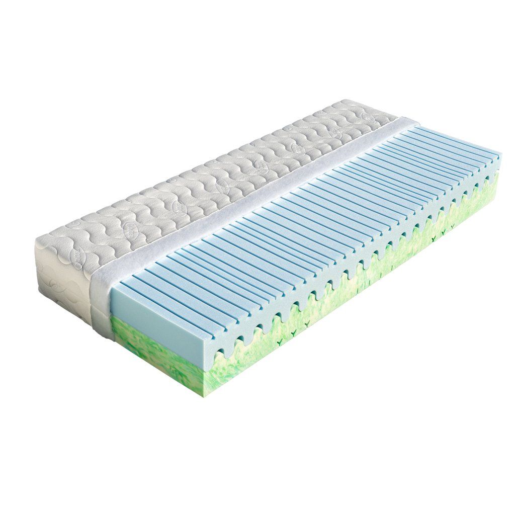 Luxusní matrace Atlanta s výškou 25 cm Vás zaujme svou modrou žíhanou pěnou Cellflex. Jedná se o komfortní studenou HR pěnu se speciálními vlastnostmi. Cellflex je extrémně pružná a dokáže se ideálně přizpůsobit všem detailům lidského těla. Je měkčí a poddajnější než polyuretanová pěna na druhé straně matrace Atlanta, proto u této matrace můžete využít volbu dvojí tvrdosti jednotlivých stran. Obě pěny jsou extrémně prodyšné a udržují jádro matrace Atlanta vždy suché a odolné vůči mikroorganismům. Důmyslný antidekubitní prořez ložných ploch matrace vyhovuje i osobám dlouhodobě upoutaným na lůžko, protože se ideálně tvaruje podle každé polohy ležícího těla a zabraňuje vzniku proleženin. Celková výška matrace Atlanta je cca 25 cm.Vlastnosti potahůÚpletVysoce kvalitní potah prošitý dutým vláknem. Potah je velmi příjemný na dotek, výborně odvádí vlhkost z těla a rychle vysychá. Potah je možno prát na 60°C. Pro snadnější praní a manipulaci je potah dělitelný zipem na dvě části. Tento nejprodávanější potah poskytuje vysoký standard celé matrace. Složení: 100% polyester.AloeVeraKvalitní potah, který obsahuje výtažek známé rostliny Aloe Vera Barbaensis z rodu liliovitých. Má pozitivní vliv na pokožku lidského těla, působí antibakteriálně. Postupně se uvolňující extrakt z AloeVera umožňuje dokonalou relaxaci ve spánku. Potah, prošitý třízónovým způsobem, je příjemný na dotek a standartně vetkané logo zaručuje nezaměnitelnost výrobku. Potah je pratelný na 60°C. Složení: 100% polyester.SilverGuardSilverGuard je jedinečná technologie, která zaručuje trvalou svěžest a hygienu během spánku. Eliminuje bakterie způsobující zápach a chrání před jejich usazováním. Ochrana je trvalá i po častém praní a čištění. Při kontaktu s pokožkou zachovává její přirozenou rovnováhu. Tento potah obsahuje přírodní viskózové vlákno, které ve spojení s moderním designem dodává textilii luxusní charakter. Zaručuje vám absolutní čistotu a pohodlí. SilverGuard® úprava: Využívá stříbro jako jeden z nejstarších a nejznámějších způsobů ochrany před houbami a bakteriemi. Díky působení stříbrných iontů chrání textilii před mikroorganismy a zabraňuje jejich rozvoji přírodní cestou. SilverGuard® zajišťuje konstantní svěžest a hygienu lůžka, vysokou odolnost proti oděru a žmolkování. Potah je pratelný na 60°C. Složení: 35% viskóza, 2% polyamid, 63% polyester.LyocellMateriál z čistého přírodního vlákna získaného ze dřeva technologií šetřící životní prostředí. Se všemi svými vynikajícími charakteristikami Vám poskytuje během spánku optimální pohodlí. K jeho předním vlastnostem patří vysoká absorpční schopnost a velmi rychlé odpařování. Tyto vlastnosti zaručují dokonalý pocit i pro osoby s vyšší potivostí. Mikrovlákna Lenzing Lyocell dodávají látce hedvábný lesk a jsou odolná a necitlivá k mikroorganismům. Potah je možno prát při 60°C. Složení potahu: 44% lyocell, 33% polyamid, 23% polyester.MedicottZnačkový typ pleteného potahu, který svým speciálním složením zabraňuje tvorbě a usazování domácích roztočů a tvorbu plísní. Roztoči žijí v tmavém, vlhkém a málo odvětrávaném prostředí, a tomu přesně odpovídá vaše postel. Hlavní obživou pro roztoče jsou odpadávající buňky vaší kůže. Ty jsou rozkládány plísněmi a tak se stávají stravitelnými pro prachové roztoče. Plíseň samotná způsobuje alergie spojené s dýchacími symptomy. Medicott je účinná složka látky, která zabraňuje v bavlně nebo v látkách s bavlněným základem vzniku plísní a současně přežití prachových roztočů. Medicott má vynikající antibakteriální účinky, které jsou dosaženy bez přídavku chemických látek. Tajemství úspěšného fungování spočívá v odstranění nečistot z vláken přírodní bavlny, čímž se zamezí potencionálnímu domovu plísní. Potah má dlouhotrvající účinek při pravidelné údržbě. Potah je pratelný na 60°C. Složení: 40% bavlna, 35% polyamid, 25% polyester.LevanduleVelmi příjemná luxusní látka, která obsahuje výtažky levandule lékařské. Levandule je oblíbená léčivá bylinka s charakteristickou vůní, známá pro svoje protizánětlivé, antiseptické a repelentní účinky. Pomáhá proti stresu, depresím, snižuje krevní tlak a potlačuje růst baktérií. Její zklidňující účinky jsou známé už z dávných dob, pozitivně ovlivňují kvalitu spánku, působí proti nespavosti a nervozitě. Levandule pomůže zmírnit svalové napětí a podpořit přirozenou regeneraci organismu. Jemná esence z levandule je skvělým pomocníkem pro hluboký a kvalitní spánek. Potah Lavandule patří mezi nejkvalitnější a nejoblíbenější potahy na trhu a zajistí Vašemu lůžku maximální komfort a hygienu. Potah je pratelný na 60°C. Složení potahu: 30,59% tencel, 69,41% polyester.Doplňkové parametry