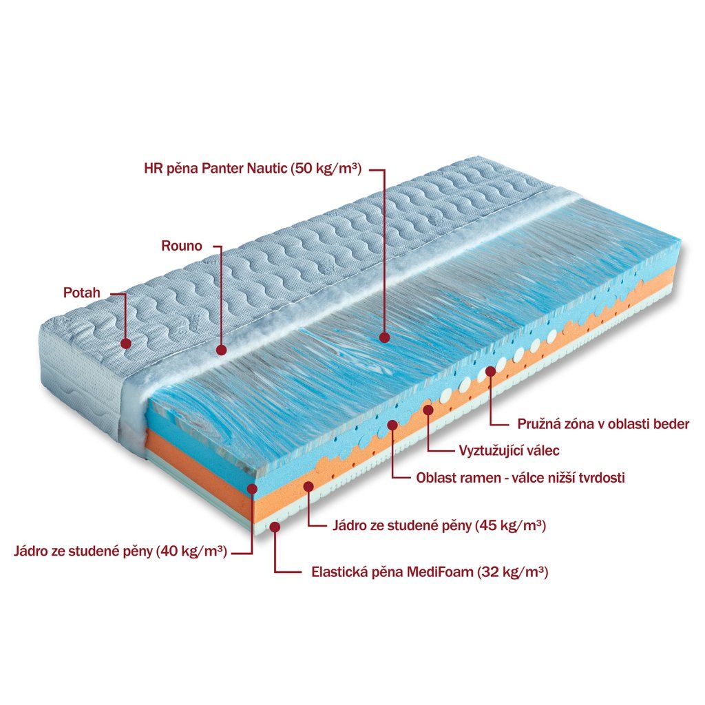 | Jádro matrace: | Studená HR pěna |