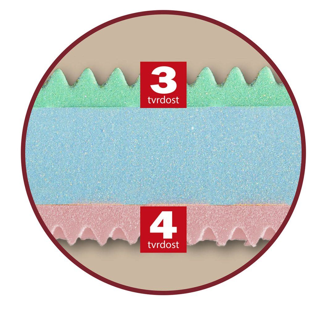 Tvrdší sedmizónová partnerská matrace Eliška od českého výrobce Dřevočal s volbou dvojí tuhosti a optimální výškou 19 cm. Matrace Eliška je ideální volbou pro páry, které preferují odlišnou tuhost lůžka. Díky dvěma stranám s různou tuhostí si každý z partnerů zvolí stranu, která mu nejlépe vyhovuje. Na výrobu matrace jsou použity vysokogramážní osvědčené pěny. Střed matrace tvoří pěna o objemové hmotnosti 35 kg/m³, která zajišťuje pevnou oporu páteře. Nosné vrstvy tvoří pěny o objemové hmotnosti 30 kg/m³ s rozdílnou tuhostí – měkčí strana matrace Eliška (stupeň tuhosti 3) a tužší strana (stupeň tuhosti 4). Nosné vrstvy jsou tvarovány do masážních nopů, které zabezpečují prokrvení pokožky a uvolnění svalů během spánku. Matrace je vhodná na všechny typy roštů. Celková výška matrace Eliška je 19 cm.Vlastnosti potahůÚpletVysoce kvalitní potah prošitý dutým vláknem. Potah je velmi příjemný na dotek, výborně odvádí vlhkost z těla a rychle vysychá. Potah je možno prát na 60°C. Pro snadnější praní a manipulaci je potah dělitelný zipem na dvě části. Tento nejprodávanější potah poskytuje vysoký standard celé matrace. Složení: 100% polyester.AloeVeraKvalitní potah, který obsahuje výtažek známé rostliny Aloe Vera Barbaensis z rodu liliovitých. Má pozitivní vliv na pokožku lidského těla, působí antibakteriálně. Postupně se uvolňující extrakt z AloeVera umožňuje dokonalou relaxaci ve spánku. Potah, prošitý třízónovým způsobem, je příjemný na dotek a standartně vetkané logo zaručuje nezaměnitelnost výrobku. Potah je pratelný na 60°C. Složení: 100% polyester.SilverGuardSilverGuard je jedinečná technologie, která zaručuje trvalou svěžest a hygienu během spánku. Eliminuje bakterie způsobující zápach a chrání před jejich usazováním. Ochrana je trvalá i po častém praní a čištění. Při kontaktu s pokožkou zachovává její přirozenou rovnováhu. Tento potah obsahuje přírodní viskózové vlákno, které ve spojení s moderním designem dodává textilii luxusní charakter. Zaručuje vám absolutní čistotu a pohodlí. SilverGuard® úprava: Využívá stříbro jako jeden z nejstarších a nejznámějších způsobů ochrany před houbami a bakteriemi. Díky působení stříbrných iontů chrání textilii před mikroorganismy a zabraňuje jejich rozvoji přírodní cestou. SilverGuard® zajišťuje konstantní svěžest a hygienu lůžka, vysokou odolnost proti oděru a žmolkování. Potah je pratelný na 60°C. Složení: 35% viskóza, 2% polyamid, 63% polyester.LyocellMateriál z čistého přírodního vlákna získaného ze dřeva technologií šetřící životní prostředí. Se všemi svými vynikajícími charakteristikami Vám poskytuje během spánku optimální pohodlí. K jeho předním vlastnostem patří vysoká absorpční schopnost a velmi rychlé odpařování. Tyto vlastnosti zaručují dokonalý pocit i pro osoby s vyšší potivostí. Mikrovlákna Lenzing Lyocell dodávají látce hedvábný lesk a jsou odolná a necitlivá k mikroorganismům. Potah je možno prát při 60°C. Složení potahu: 44% lyocell, 33% polyamid, 23% polyester.MedicottZnačkový typ pleteného potahu, který svým speciálním složením zabraňuje tvorbě a usazování domácích roztočů a tvorbu plísní. Roztoči žijí v tmavém, vlhkém a málo odvětrávaném prostředí, a tomu přesně odpovídá vaše postel. Hlavní obživou pro roztoče jsou odpadávající buňky vaší kůže. Ty jsou rozkládány plísněmi a tak se stávají stravitelnými pro prachové roztoče. Plíseň samotná způsobuje alergie spojené s dýchacími symptomy. Medicott je účinná složka látky, která zabraňuje v bavlně nebo v látkách s bavlněným základem vzniku plísní a současně přežití prachových roztočů. Medicott má vynikající antibakteriální účinky, které jsou dosaženy bez přídavku chemických látek. Tajemství úspěšného fungování spočívá v odstranění nečistot z vláken přírodní bavlny, čímž se zamezí potencionálnímu domovu plísní. Potah má dlouhotrvající účinek při pravidelné údržbě. Potah je pratelný na 60°C. Složení: 40% bavlna, 35% polyamid, 25% polyester.LevanduleVelmi příjemná luxusní látka, která obsahuje výtažky levandule lékařské. Levandule je oblíbená léčivá bylinka s charakteristickou vůní, známá pro svoje protizánětlivé, antiseptické a repelentní účinky. Pomáhá proti stresu, depresím, snižuje krevní tlak a potlačuje růst baktérií. Její zklidňující účinky jsou známé už z dávných dob, pozitivně ovlivňují kvalitu spánku, působí proti nespavosti a nervozitě. Levandule pomůže zmírnit svalové napětí a podpořit přirozenou regeneraci organismu. Jemná esence z levandule je skvělým pomocníkem pro hluboký a kvalitní spánek. Potah Lavandule patří mezi nejkvalitnější a nejoblíbenější potahy na trhu a zajistí Vašemu lůžku maximální komfort a hygienu. Potah je pratelný na 60°C. Složení potahu: 30,59% tencel, 69,41% polyester.StoneKvalitní moderní potah šedé barvy zaujme svým designem a je odolný proti ušpinění. Je velmi příjemný na dotek, výborně odvádí vlhkost a rychle vysychá. Potah je pratelný na 60°C.Doplňkové parametry