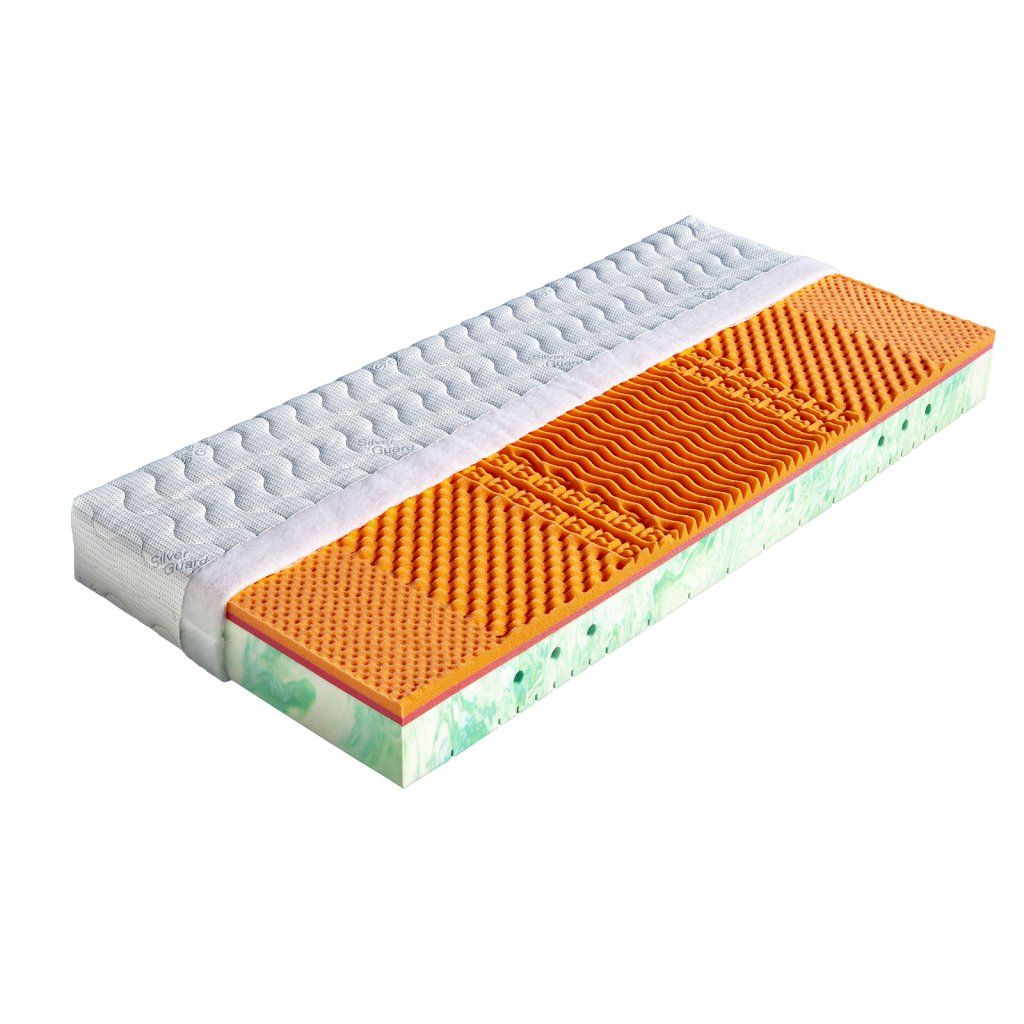 Sedmi zónová matrace Lefkada s pevnější stranou z pěny MediFoam o gramáži 32 kg/m³, která má zónové prořezy. Navíc její otvory v místech pod rameny vytvářejí tzv. ramenní kolébku, která je ideální pro spaní na boku. Horní stranu matrace Lefkada změkčuje visco elastická (líná, paměťová) pěna o gramáži 45 kg/m³, která mění svou tuhost v závislosti na teplotě. Rovnoměrně rozkládá tlak materiálu na ležící tělo a nevytváří protitlak. Pohodlný spánek zaručuje tvarování do masážních nopů. Ke zvýšení komfortu je navíc podepřena červenou antibakteriální pěnou s hustotou 32 kg/m³ s úpravou Sanitized® pro ochranu proti bakteriím a roztočům. |Matrace Lefkada je vhodná na všechny typy roštů. Celková výška je 20 cm.Pěna MediFoam - Tato vysoce gramážní pěna, která se vyznačuje skvělými ortopedickými vlastnostmi, je vytvořena speciální technologií. Má dokonalou prodyšnost, pružnost, je tvarově stálá a má dlouhou životnost. Zvýšená pórovitost je velmi dobrá k odvádění tepla z matrace, tato pěna tzv. dýchá. Matrace z pěny MediFoam zajišťují ideální uvolnění páteře, kloubů a svalů po dobu Vašeho spánku. Jsou testované a mají certifikát Textilního zkušebního ústavu, s.p. v Brně. Pěna MediFoam je garancí kvality.Antibakteriální pěna Sanitized® - Speciální antibakteriální pěna s certifikovanou úpravou Sanitized® (biocidní látka- nezávadná, vhodná i pro děti do 3 let), která likviduje baktérie, houby, roztoče, plísně a další nežádoucí mikroorganismy v matraci. Je dermatologicky testována a šetrná vůči pokožce. Matrace z této pěny jsou díky antimikrobiální úpravě Sanitized® jsou revolučním řešením pro alergiky.Visco pěna - Pěna, která mění svou tuhost v závislosti na teplotě. To znamená, že při tělesném kontaktu pěna změkne. Rovnoměrně rozkládá tlak materiálu na lidské tělo, což pozitivně ovlivňuje krevní oběh. Významný komfort spánku zaručuje tvarování líné pěny do tzv. masážních nopů, které dokonale prokrvují vrchní část pokožky. Viscoelastická pěna nevytváří protitlak a tím zabraňuje případnému vzniku proleženin.Vlastnosti potahůÚpletVysoce kvalitní potah prošitý dutým vláknem. Potah je velmi příjemný na dotek, výborně odvádí vlhkost z těla a rychle vysychá. Potah je možno prát na 60°C. Pro snadnější praní a manipulaci je potah dělitelný zipem na dvě části. Tento nejprodávanější potah poskytuje vysoký standard celé matrace. Složení: 100% polyester.AloeVeraKvalitní potah, který obsahuje výtažek známé rostliny Aloe Vera Barbaensis z rodu liliovitých. Má pozitivní vliv na pokožku lidského těla, působí antibakteriálně. Postupně se uvolňující extrakt z AloeVera umožňuje dokonalou relaxaci ve spánku. Potah, prošitý třízónovým způsobem, je příjemný na dotek a standartně vetkané logo zaručuje nezaměnitelnost výrobku. Potah je pratelný na 60°C. Složení: 100% polyester.SilverGuardSilverGuard je jedinečná technologie, která zaručuje trvalou svěžest a hygienu během spánku. Eliminuje bakterie způsobující zápach a chrání před jejich usazováním. Ochrana je trvalá i po častém praní a čištění. Při kontaktu s pokožkou zachovává její přirozenou rovnováhu. Tento potah obsahuje přírodní viskózové vlákno, které ve spojení s moderním designem dodává textilii luxusní charakter. Zaručuje vám absolutní čistotu a pohodlí. SilverGuard® úprava: Využívá stříbro jako jeden z nejstarších a nejznámějších způsobů ochrany před houbami a bakteriemi. Díky působení stříbrných iontů chrání textilii před mikroorganismy a zabraňuje jejich rozvoji přírodní cestou. SilverGuard® zajišťuje konstantní svěžest a hygienu lůžka, vysokou odolnost proti oděru a žmolkování. Potah je pratelný na 60°C. Složení: 35% viskóza, 2% polyamid, 63% polyester.LyocellMateriál z čistého přírodního vlákna získaného ze dřeva technologií šetřící životní prostředí. Se všemi svými vynikajícími charakteristikami Vám poskytuje během spánku optimální pohodlí. K jeho předním vlastnostem patří vysoká absorpční schopnost a velmi rychlé odpařování. Tyto vlastnosti zaručují dokonalý pocit i pro osoby s vyšší potivostí. Mikrovlákna Lenzing Lyocell dodávají látce hedvábný lesk a jsou odolná a necitlivá k mikroorganismům. Potah je možno prát při 60°C. Složení potahu: 44% lyocell, 33% polyamid, 23% polyester.MedicottZnačkový typ pleteného potahu, který svým speciálním složením zabraňuje tvorbě a usazování domácích roztočů a tvorbu plísní. Roztoči žijí v tmavém, vlhkém a málo odvětrávaném prostředí, a tomu přesně odpovídá vaše postel. Hlavní obživou pro roztoče jsou odpadávající buňky vaší kůže. Ty jsou rozkládány plísněmi a tak se stávají stravitelnými pro prachové roztoče. Plíseň samotná způsobuje alergie spojené s dýchacími symptomy. Medicott je účinná složka látky, která zabraňuje v bavlně nebo v látkách s bavlněným základem vzniku plísní a současně přežití prachových roztočů. Medicott má vynikající antibakteriální účinky, které jsou dosaženy bez přídavku chemických látek. Tajemství úspěšného fungování spočívá v odstranění nečistot z vláken přírodní bavlny, čímž se zamezí potencionálnímu domovu plísní. Potah má dlouhotrvající účinek při pravidelné údržbě. Potah je pratelný na 60°C. Složení: 40% bavlna, 35% polyamid, 25% polyester.LevanduleVelmi příjemná luxusní látka, která obsahuje výtažky levandule lékařské. Levandule je oblíbená léčivá bylinka s charakteristickou vůní, známá pro svoje protizánětlivé, antiseptické a repelentní účinky. Pomáhá proti 
