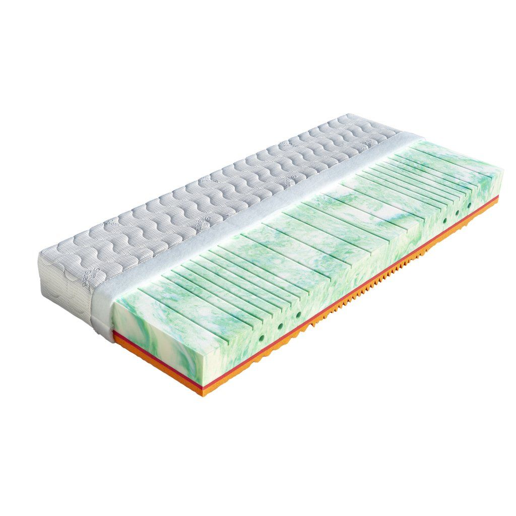 Sedmi zónová matrace Lefkada s pevnější stranou z pěny MediFoam o gramáži 32 kg/m³, která má zónové prořezy. Navíc její otvory v místech pod rameny vytvářejí tzv. ramenní kolébku, která je ideální pro spaní na boku. Horní stranu matrace Lefkada změkčuje visco elastická (líná, paměťová) pěna o gramáži 45 kg/m³, která mění svou tuhost v závislosti na teplotě. Rovnoměrně rozkládá tlak materiálu na ležící tělo a nevytváří protitlak. Pohodlný spánek zaručuje tvarování do masážních nopů. Ke zvýšení komfortu je navíc podepřena červenou antibakteriální pěnou s hustotou 32 kg/m³ s úpravou Sanitized® pro ochranu proti bakteriím a roztočům. |Matrace Lefkada je vhodná na všechny typy roštů. Celková výška je 20 cm.Pěna MediFoam - Tato vysoce gramážní pěna, která se vyznačuje skvělými ortopedickými vlastnostmi, je vytvořena speciální technologií. Má dokonalou prodyšnost, pružnost, je tvarově stálá a má dlouhou životnost. Zvýšená pórovitost je velmi dobrá k odvádění tepla z matrace, tato pěna tzv. dýchá. Matrace z pěny MediFoam zajišťují ideální uvolnění páteře, kloubů a svalů po dobu Vašeho spánku. Jsou testované a mají certifikát Textilního zkušebního ústavu, s.p. v Brně. Pěna MediFoam je garancí kvality.Antibakteriální pěna Sanitized® - Speciální antibakteriální pěna s certifikovanou úpravou Sanitized® (biocidní látka- nezávadná, vhodná i pro děti do 3 let), která likviduje baktérie, houby, roztoče, plísně a další nežádoucí mikroorganismy v matraci. Je dermatologicky testována a šetrná vůči pokožce. Matrace z této pěny jsou díky antimikrobiální úpravě Sanitized® jsou revolučním řešením pro alergiky.Visco pěna - Pěna, která mění svou tuhost v závislosti na teplotě. To znamená, že při tělesném kontaktu pěna změkne. Rovnoměrně rozkládá tlak materiálu na lidské tělo, což pozitivně ovlivňuje krevní oběh. Významný komfort spánku zaručuje tvarování líné pěny do tzv. masážních nopů, které dokonale prokrvují vrchní část pokožky. Viscoelastická pěna nevytváří protitlak a tím zabraňuje případnému vzniku proleženin.Vlastnosti potahůÚpletVysoce kvalitní potah prošitý dutým vláknem. Potah je velmi příjemný na dotek, výborně odvádí vlhkost z těla a rychle vysychá. Potah je možno prát na 60°C. Pro snadnější praní a manipulaci je potah dělitelný zipem na dvě části. Tento nejprodávanější potah poskytuje vysoký standard celé matrace. Složení: 100% polyester.AloeVeraKvalitní potah, který obsahuje výtažek známé rostliny Aloe Vera Barbaensis z rodu liliovitých. Má pozitivní vliv na pokožku lidského těla, působí antibakteriálně. Postupně se uvolňující extrakt z AloeVera umožňuje dokonalou relaxaci ve spánku. Potah, prošitý třízónovým způsobem, je příjemný na dotek a standartně vetkané logo zaručuje nezaměnitelnost výrobku. Potah je pratelný na 60°C. Složení: 100% polyester.SilverGuardSilverGuard je jedinečná technologie, která zaručuje trvalou svěžest a hygienu během spánku. Eliminuje bakterie způsobující zápach a chrání před jejich usazováním. Ochrana je trvalá i po častém praní a čištění. Při kontaktu s pokožkou zachovává její přirozenou rovnováhu. Tento potah obsahuje přírodní viskózové vlákno, které ve spojení s moderním designem dodává textilii luxusní charakter. Zaručuje vám absolutní čistotu a pohodlí. SilverGuard® úprava: Využívá stříbro jako jeden z nejstarších a nejznámějších způsobů ochrany před houbami a bakteriemi. Díky působení stříbrných iontů chrání textilii před mikroorganismy a zabraňuje jejich rozvoji přírodní cestou. SilverGuard® zajišťuje konstantní svěžest a hygienu lůžka, vysokou odolnost proti oděru a žmolkování. Potah je pratelný na 60°C. Složení: 35% viskóza, 2% polyamid, 63% polyester.LyocellMateriál z čistého přírodního vlákna získaného ze dřeva technologií šetřící životní prostředí. Se všemi svými vynikajícími charakteristikami Vám poskytuje během spánku optimální pohodlí. K jeho předním vlastnostem patří vysoká absorpční schopnost a velmi rychlé odpařování. Tyto vlastnosti zaručují dokonalý pocit i pro osoby s vyšší potivostí. Mikrovlákna Lenzing Lyocell dodávají látce hedvábný lesk a jsou odolná a necitlivá k mikroorganismům. Potah je možno prát při 60°C. Složení potahu: 44% lyocell, 33% polyamid, 23% polyester.MedicottZnačkový typ pleteného potahu, který svým speciálním složením zabraňuje tvorbě a usazování domácích roztočů a tvorbu plísní. Roztoči žijí v tmavém, vlhkém a málo odvětrávaném prostředí, a tomu přesně odpovídá vaše postel. Hlavní obživou pro roztoče jsou odpadávající buňky vaší kůže. Ty jsou rozkládány plísněmi a tak se stávají stravitelnými pro prachové roztoče. Plíseň samotná způsobuje alergie spojené s dýchacími symptomy. Medicott je účinná složka látky, která zabraňuje v bavlně nebo v látkách s bavlněným základem vzniku plísní a současně přežití prachových roztočů. Medicott má vynikající antibakteriální účinky, které jsou dosaženy bez přídavku chemických látek. Tajemství úspěšného fungování spočívá v odstranění nečistot z vláken přírodní bavlny, čímž se zamezí potencionálnímu domovu plísní. Potah má dlouhotrvající účinek při pravidelné údržbě. Potah je pratelný na 60°C. Složení: 40% bavlna, 35% polyamid, 25% polyester.LevanduleVelmi příjemná luxusní látka, která obsahuje výtažky levandule lékařské. Levandule je oblíbená léčivá bylinka s charakteristickou vůní, známá pro svoje protizánětlivé, antiseptické a repelentní účinky. Pomáhá proti 