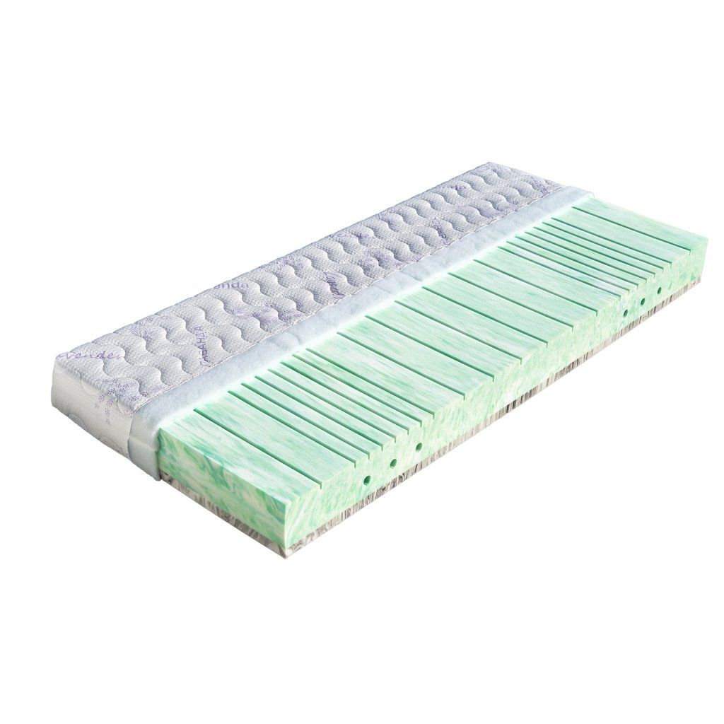 Velmi pohodlná matrace Rimini s volbou dvojí tvrdosti od české firmy Dřevočal. Vrchní strana je tvořena velmi kvalitní studenou pěnou PanterFoam o hustotě 50 kg/m³. Ta je charakteristická svoji vysokou prodyšností a především nadstandardní odolností. Je příjemně elastická. Její středová část je tvořena antibakteriální pěnou PanterFoam Nautic (50 kg/m³), která je odolná vůči bakteriím a roztočům. Jádro matrace Rimini z pěny MediFoam (32 kg/m³) je opatřeno otvory, vytváří tzn. ramenní kolébku, která ideálně kopíruje tělo při spánku na boku. Matrace je vhodná na všechny typy roštů. Celková výška matrace Rimini je cca 17 cm.Pěna MediFoam - Tato vysoce gramážní pěna, která se vyznačuje skvělými ortopedickými vlastnostmi, je vytvořena speciální technologií. Má dokonalou prodyšnost, pružnost, je tvarově stálá a má dlouhou životnost. Zvýšená pórovitost je velmi dobrá k odvádění tepla z matrace, tato pěna tzv. dýchá. Matrace z pěny MediFoam zajišťují ideální uvolnění páteře, kloubů a svalů po dobu Vašeho spánku. Jsou testované a mají certifikát Textilního zkušebního ústavu, s.p. v Brně. Pěna MediFoam je garancí kvality.Pěna PanterFoam - Extrémně prodyšná studená HR pěna se změkčujícím efektem a příjemně hladkým povrchem. Nevytváří protitlak vůči tělu a poskytuje dokonalou oporu páteře. Je podobná líné pěně díky své měkkosti a přizpůsobivosti při zachování vlastností studené pěny jako je vzdušnost a nepřehřívání těla.Vlastnosti potahůÚpletVysoce kvalitní potah prošitý dutým vláknem. Potah je velmi příjemný na dotek, výborně odvádí vlhkost z těla a rychle vysychá. Potah je možno prát na 60°C. Pro snadnější praní a manipulaci je potah dělitelný zipem na dvě části. Tento nejprodávanější potah poskytuje vysoký standard celé matrace. Složení: 100% polyester.AloeVeraKvalitní potah, který obsahuje výtažek známé rostliny Aloe Vera Barbaensis z rodu liliovitých. Má pozitivní vliv na pokožku lidského těla, působí antibakteriálně. Postupně se uvolňující extrakt z AloeVera umožňuje dokonalou relaxaci ve spánku. Potah, prošitý třízónovým způsobem, je příjemný na dotek a standartně vetkané logo zaručuje nezaměnitelnost výrobku. Potah je pratelný na 60°C. Složení: 100% polyester.SilverGuardSilverGuard je jedinečná technologie, která zaručuje trvalou svěžest a hygienu během spánku. Eliminuje bakterie způsobující zápach a chrání před jejich usazováním. Ochrana je trvalá i po častém praní a čištění. Při kontaktu s pokožkou zachovává její přirozenou rovnováhu. Tento potah obsahuje přírodní viskózové vlákno, které ve spojení s moderním designem dodává textilii luxusní charakter. Zaručuje vám absolutní čistotu a pohodlí. SilverGuard® úprava: Využívá stříbro jako jeden z nejstarších a nejznámějších způsobů ochrany před houbami a bakteriemi. Díky působení stříbrných iontů chrání textilii před mikroorganismy a zabraňuje jejich rozvoji přírodní cestou. SilverGuard® zajišťuje konstantní svěžest a hygienu lůžka, vysokou odolnost proti oděru a žmolkování. Potah je pratelný na 60°C. Složení: 35% viskóza, 2% polyamid, 63% polyester.LyocellMateriál z čistého přírodního vlákna získaného ze dřeva technologií šetřící životní prostředí. Se všemi svými vynikajícími charakteristikami Vám poskytuje během spánku optimální pohodlí. K jeho předním vlastnostem patří vysoká absorpční schopnost a velmi rychlé odpařování. Tyto vlastnosti zaručují dokonalý pocit i pro osoby s vyšší potivostí. Mikrovlákna Lenzing Lyocell dodávají látce hedvábný lesk a jsou odolná a necitlivá k mikroorganismům. Potah je možno prát při 60°C. Složení potahu: 44% lyocell, 33% polyamid, 23% polyester.MedicottZnačkový typ pleteného potahu, který svým speciálním složením zabraňuje tvorbě a usazování domácích roztočů a tvorbu plísní. Roztoči žijí v tmavém, vlhkém a málo odvětrávaném prostředí, a tomu přesně odpovídá vaše postel. Hlavní obživou pro roztoče jsou odpadávající buňky vaší kůže. Ty jsou rozkládány plísněmi a tak se stávají stravitelnými pro prachové roztoče. Plíseň samotná způsobuje alergie spojené s dýchacími symptomy. Medicott je účinná složka látky, která zabraňuje v bavlně nebo v látkách s bavlněným základem vzniku plísní a současně přežití prachových roztočů. Medicott má vynikající antibakteriální účinky, které jsou dosaženy bez přídavku chemických látek. Tajemství úspěšného fungování spočívá v odstranění nečistot z vláken přírodní bavlny, čímž se zamezí potencionálnímu domovu plísní. Potah má dlouhotrvající účinek při pravidelné údržbě. Potah je pratelný na 60°C. Složení: 40% bavlna, 35% polyamid, 25% polyester.LevanduleVelmi příjemná luxusní látka, která obsahuje výtažky levandule lékařské. Levandule je oblíbená léčivá bylinka s charakteristickou vůní, známá pro svoje protizánětlivé, antiseptické a repelentní účinky. Pomáhá proti stresu, depresím, snižuje krevní tlak a potlačuje růst baktérií. Její zklidňující účinky jsou známé už z dávných dob, pozitivně ovlivňují kvalitu spánku, působí proti nespavosti a nervozitě. Levandule pomůže zmírnit svalové napětí a podpořit přirozenou regeneraci organismu. Jemná esence z levandule je skvělým pomocníkem pro hluboký a kvalitní spánek. Potah Lavandule patří mezi nejkvalitnější a nejoblíbenější potahy na trhu a zajistí Vašemu lůžku maximální komfort a hygienu. Potah je pratelný na 60°C. Složení potahu: 30,59% tencel, 69,41% polyester.Doplňkové parametry