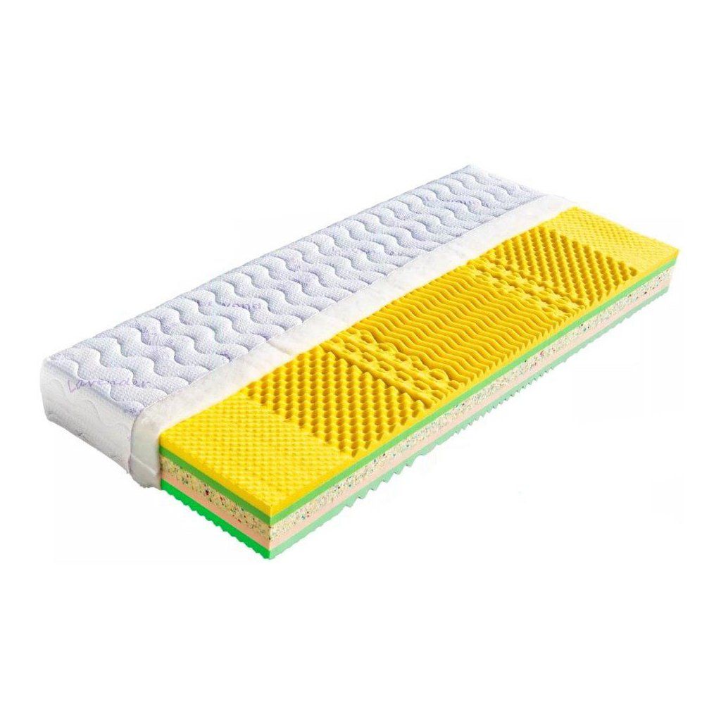 Sendvičová matrace Svatava od tradičního českého výrobce Dřevočal s vynikajícími ortopedickými vlastnostmi, u které využijete volbu dvojí tvrdosti. Díky inovativní kombinaci paměťové pěny a pěny MediFoam nabízí optimální rovnováhu mezi pohodlím a pevnou oporou. Pomáhá předcházet bolestem zad, uvolňuje svaly a podporuje správnou ergonomii těla během spánku. Měkčí strana (tvrdost č. 2) matrace Svatava je tvořena viscoelastickou pěnou tvarovanou do masážních nopů (45 kg/m³). Pěna reaguje na tělesné teplo a přizpůsobuje se konturám těla. Pod ní je vrstva pěny MediFoam (30 kg/m³). Vyztužení a odolnost matrace je zabezpečena vysoce gramážní plotnou pojeného polyuretanu (RE 70) ve střední části matrace. Tvrdší stranu (tvrdost č. 3) tvoří rovná plotna pěny MediFoam (30 kg/m³) společně s další vrstvou MediFoam (32 kg/m³) tvarovanou do masážních nopů v sedmi zónách. Matrace je vhodná na všechny typy roštů. Celková výška matrace Svatava je cca 20 cm.Vlastnosti potahůÚpletVysoce kvalitní potah prošitý dutým vláknem. Potah je velmi příjemný na dotek, výborně odvádí vlhkost z těla a rychle vysychá. Potah je možno prát na 60°C. Pro snadnější praní a manipulaci je potah dělitelný zipem na dvě části. Tento nejprodávanější potah poskytuje vysoký standard celé matrace. Složení: 100% polyester.AloeVeraKvalitní potah, který obsahuje výtažek známé rostliny Aloe Vera Barbaensis z rodu liliovitých. Má pozitivní vliv na pokožku lidského těla, působí antibakteriálně. Postupně se uvolňující extrakt z AloeVera umožňuje dokonalou relaxaci ve spánku. Potah, prošitý třízónovým způsobem, je příjemný na dotek a standartně vetkané logo zaručuje nezaměnitelnost výrobku. Potah je pratelný na 60°C. Složení: 100% polyester.SilverGuardSilverGuard je jedinečná technologie, která zaručuje trvalou svěžest a hygienu během spánku. Eliminuje bakterie způsobující zápach a chrání před jejich usazováním. Ochrana je trvalá i po častém praní a čištění. Při kontaktu s pokožkou zachovává její přirozenou rovnováhu. Tento potah obsahuje přírodní viskózové vlákno, které ve spojení s moderním designem dodává textilii luxusní charakter. Zaručuje vám absolutní čistotu a pohodlí. SilverGuard® úprava: Využívá stříbro jako jeden z nejstarších a nejznámějších způsobů ochrany před houbami a bakteriemi. Díky působení stříbrných iontů chrání textilii před mikroorganismy a zabraňuje jejich rozvoji přírodní cestou. SilverGuard® zajišťuje konstantní svěžest a hygienu lůžka, vysokou odolnost proti oděru a žmolkování. Potah je pratelný na 60°C. Složení: 35% viskóza, 2% polyamid, 63% polyester.LyocellMateriál z čistého přírodního vlákna získaného ze dřeva technologií šetřící životní prostředí. Se všemi svými vynikajícími charakteristikami Vám poskytuje během spánku optimální pohodlí. K jeho předním vlastnostem patří vysoká absorpční schopnost a velmi rychlé odpařování. Tyto vlastnosti zaručují dokonalý pocit i pro osoby s vyšší potivostí. Mikrovlákna Lenzing Lyocell dodávají látce hedvábný lesk a jsou odolná a necitlivá k mikroorganismům. Potah je možno prát při 60°C. Složení potahu: 44% lyocell, 33% polyamid, 23% polyester.MedicottZnačkový typ pleteného potahu, který svým speciálním složením zabraňuje tvorbě a usazování domácích roztočů a tvorbu plísní. Roztoči žijí v tmavém, vlhkém a málo odvětrávaném prostředí, a tomu přesně odpovídá vaše postel. Hlavní obživou pro roztoče jsou odpadávající buňky vaší kůže. Ty jsou rozkládány plísněmi a tak se stávají stravitelnými pro prachové roztoče. Plíseň samotná způsobuje alergie spojené s dýchacími symptomy. Medicott je účinná složka látky, která zabraňuje v bavlně nebo v látkách s bavlněným základem vzniku plísní a současně přežití prachových roztočů. Medicott má vynikající antibakteriální účinky, které jsou dosaženy bez přídavku chemických látek. Tajemství úspěšného fungování spočívá v odstranění nečistot z vláken přírodní bavlny, čímž se zamezí potencionálnímu domovu plísní. Potah má dlouhotrvající účinek při pravidelné údržbě. Potah je pratelný na 60°C. Složení: 40% bavlna, 35% polyamid, 25% polyester.LevanduleVelmi příjemná luxusní látka, která obsahuje výtažky levandule lékařské. Levandule je oblíbená léčivá bylinka s charakteristickou vůní, známá pro svoje protizánětlivé, antiseptické a repelentní účinky. Pomáhá proti stresu, depresím, snižuje krevní tlak a potlačuje růst baktérií. Její zklidňující účinky jsou známé už z dávných dob, pozitivně ovlivňují kvalitu spánku, působí proti nespavosti a nervozitě. Levandule pomůže zmírnit svalové napětí a podpořit přirozenou regeneraci organismu. Jemná esence z levandule je skvělým pomocníkem pro hluboký a kvalitní spánek. Potah Lavandule patří mezi nejkvalitnější a nejoblíbenější potahy na trhu a zajistí Vašemu lůžku maximální komfort a hygienu. Potah je pratelný na 60°C. Složení potahu: 30,59% tencel, 69,41% polyester.StoneKvalitní moderní potah šedé barvy zaujme svým designem a je odolný proti ušpinění. Je velmi příjemný na dotek, výborně odvádí vlhkost a rychle vysychá. Potah je pratelný na 60°C.Doplňkové parametry