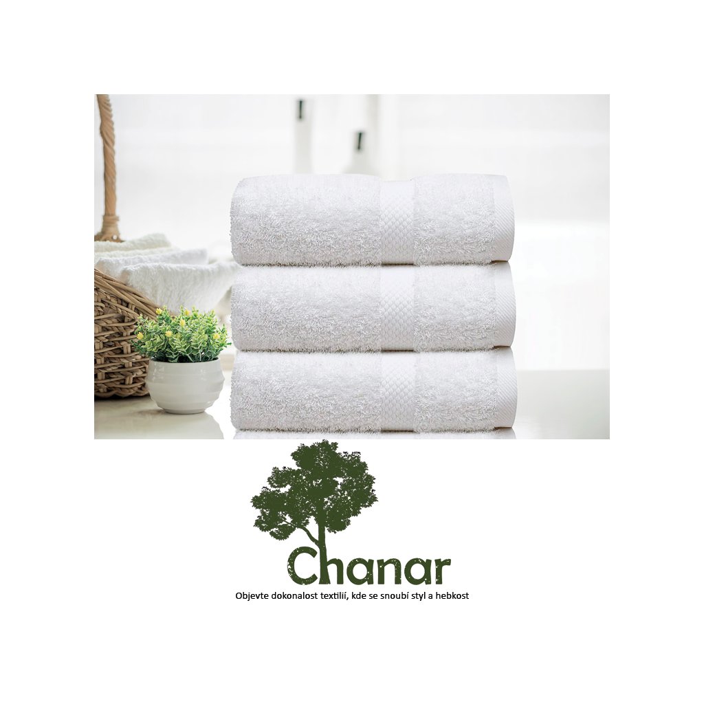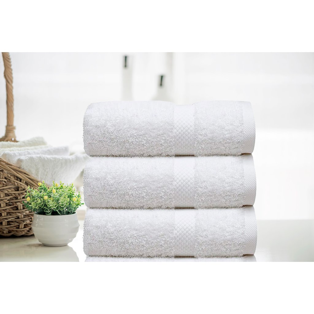Ručník má okraje zdobené elegantní bordurou. Bílý ručník s vynikající tloušťkou a elegantním designem jej činí luxusnějším.