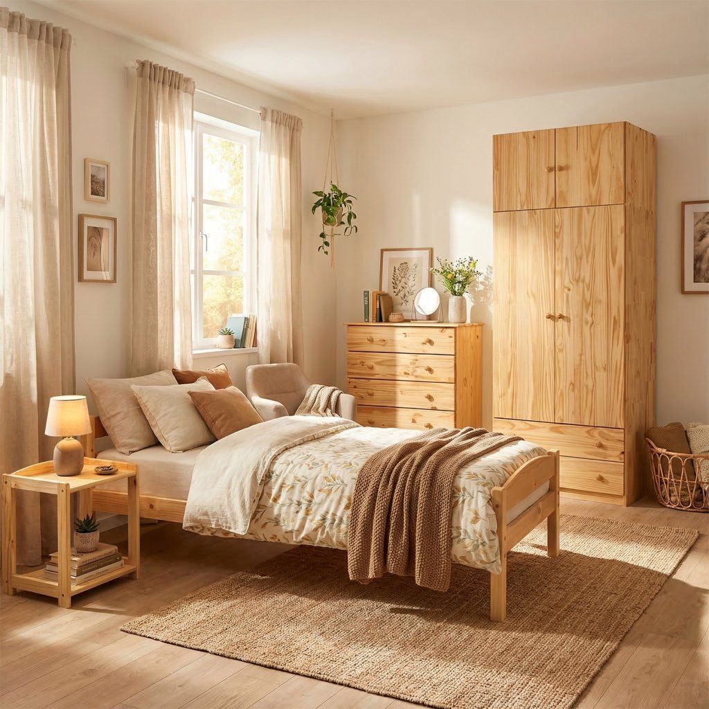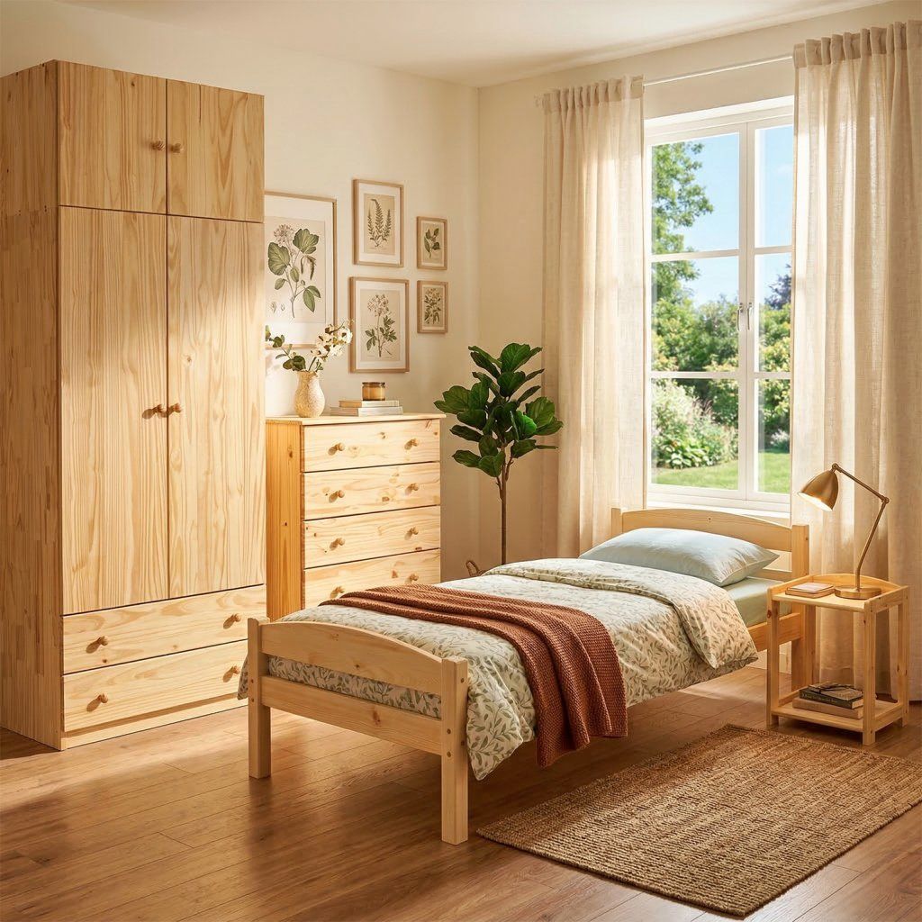 materiál masiv borovice, lakované provedení výška sedu 42 cm, cena bez roštu a matrace doporučený rozměr matrace 90 × 200 cm (M2, M5, M9, M12, M24, M26, M41) a rošt R1Doplňkové parametry