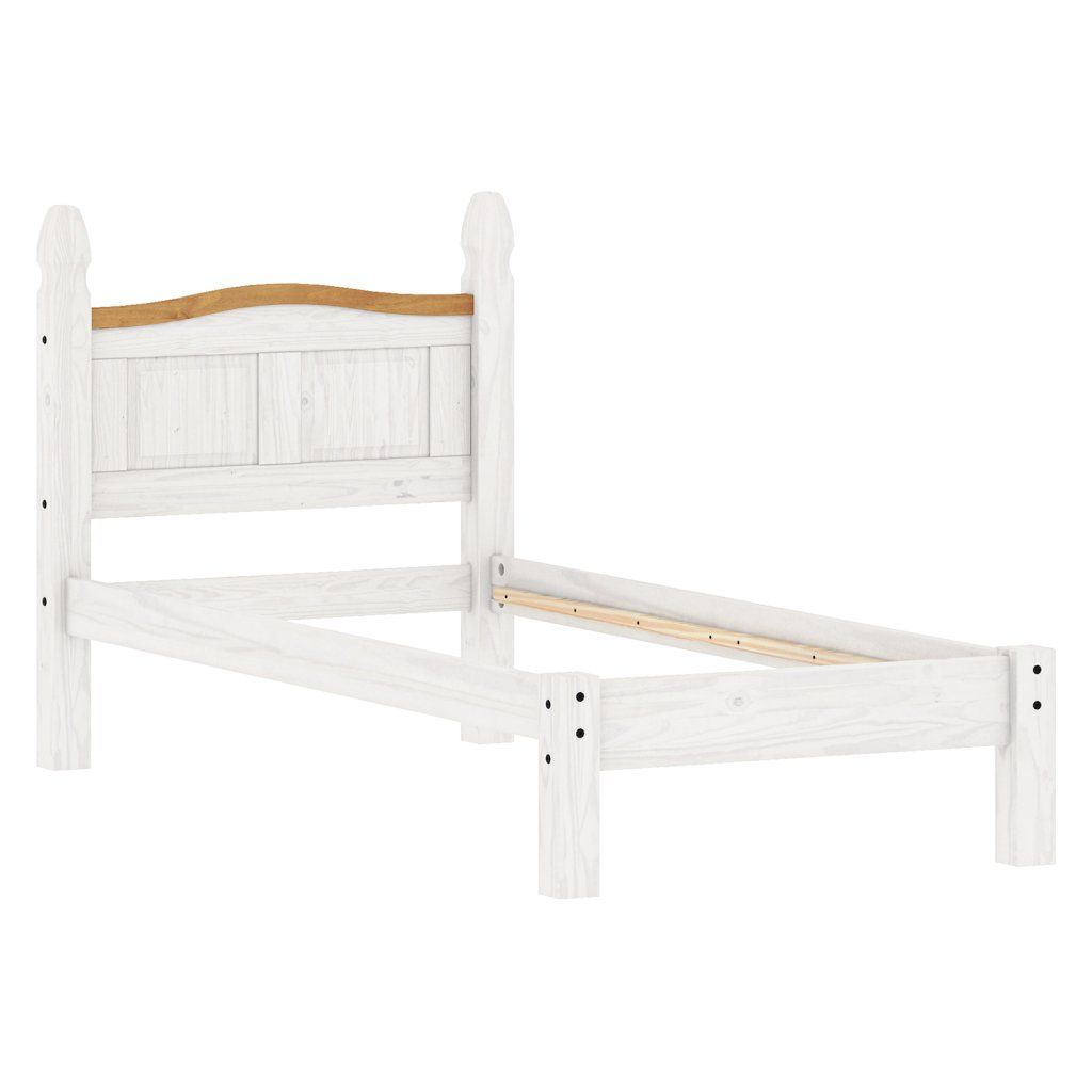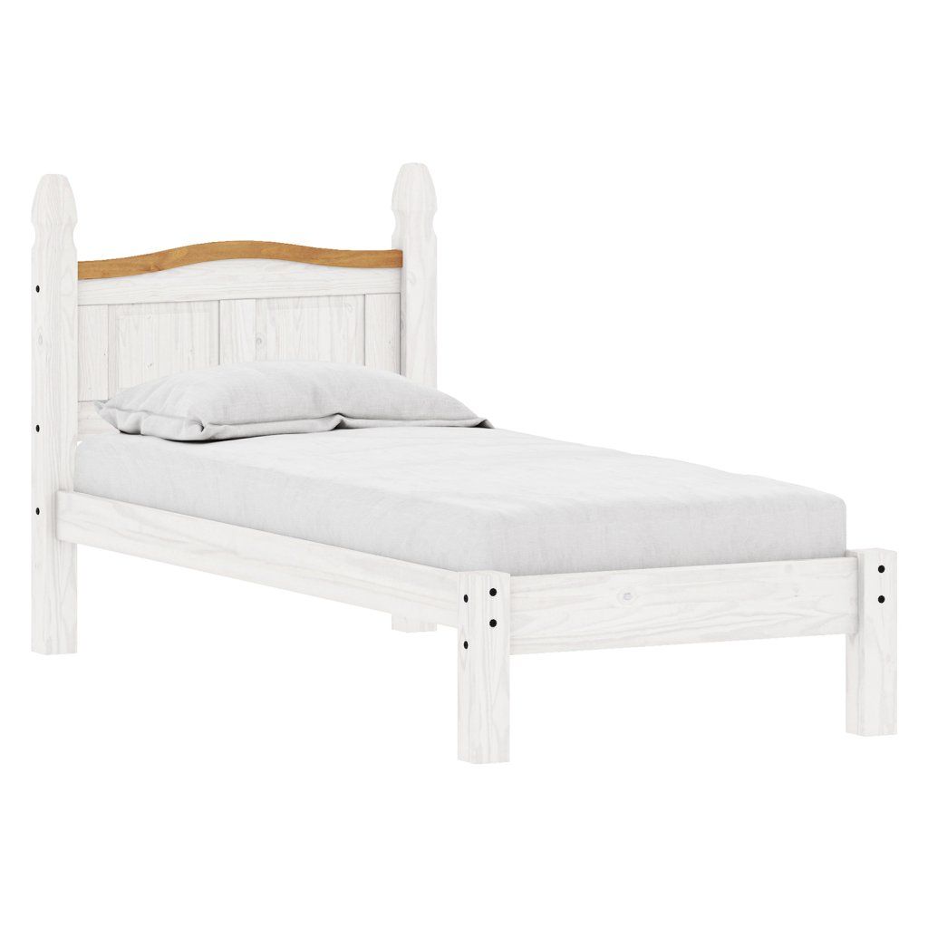 materiál masiv borovice voskovaná v bílém odstínu horní lem masiv borovice voskovaná v medovém odstínu cena bez roštu a matrace doporučený rozměr matrace 90 × 200 cm a rošt R1 toto lůžko NELZE kombinovat s lamelovým roštem 7154 nebo 7861 součást sestavy Corona bíláDoplňkové parametry