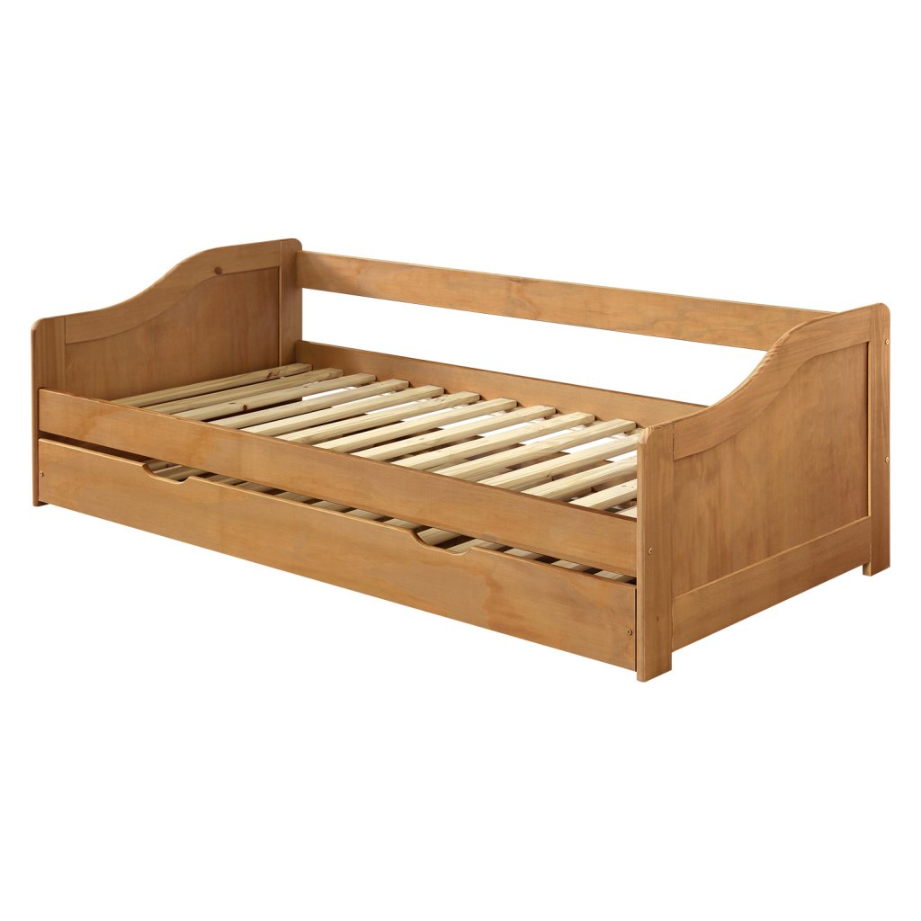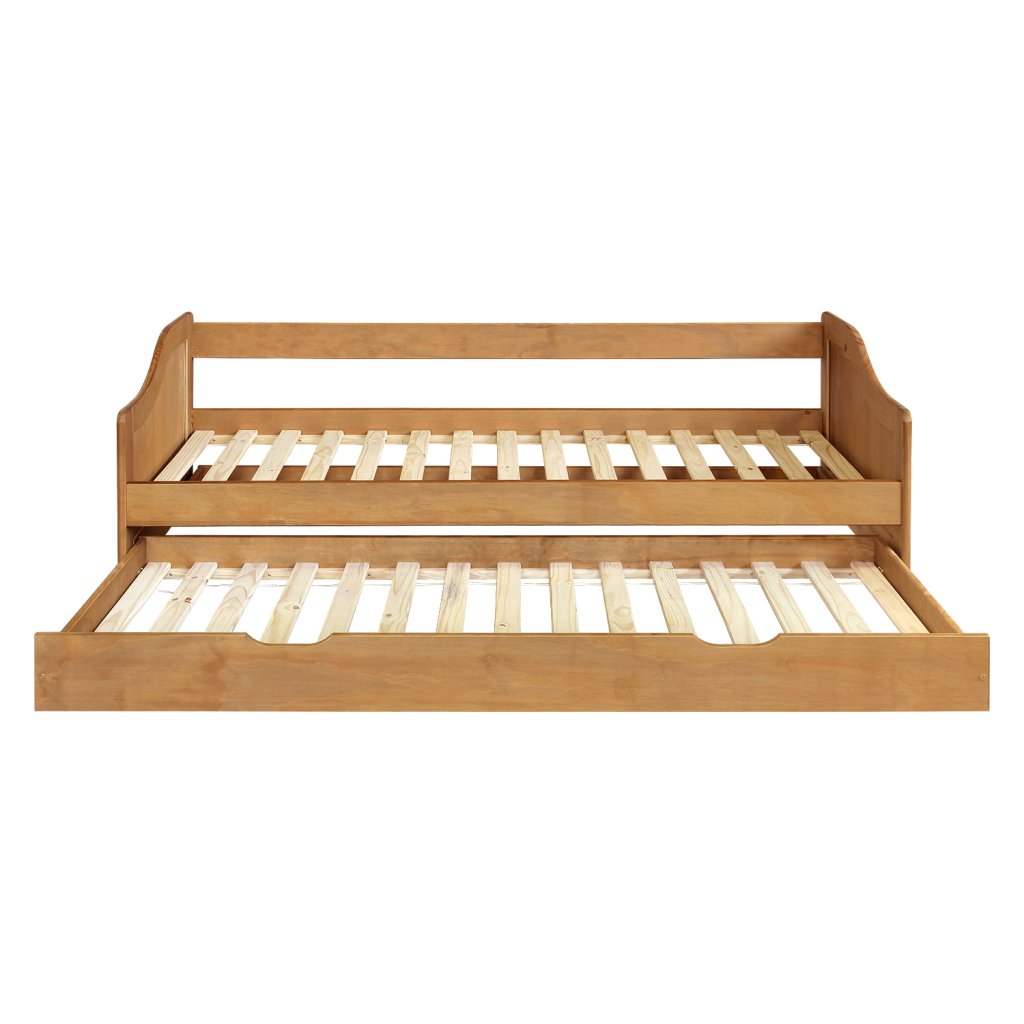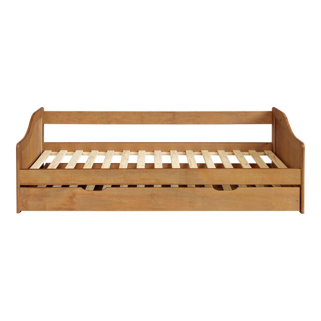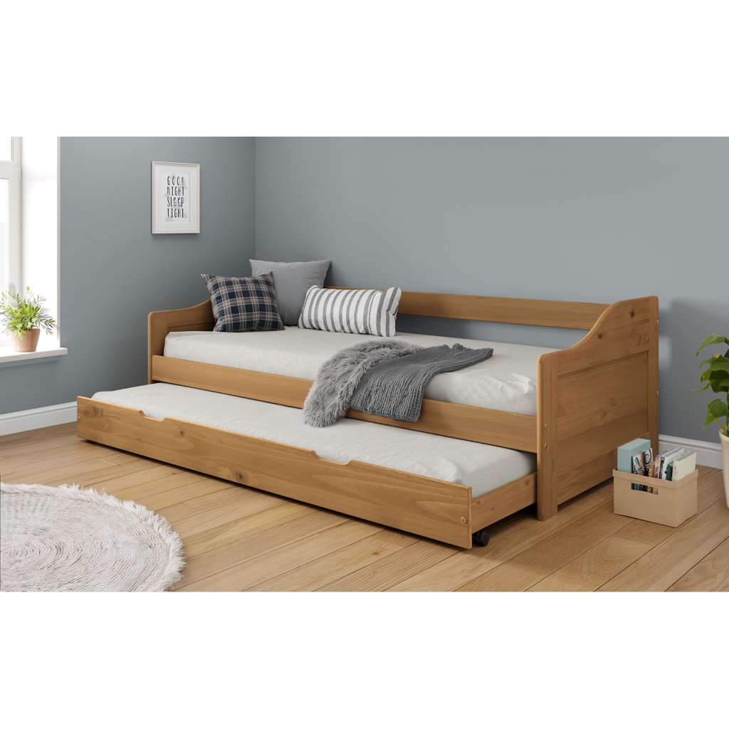Hledáte praktické řešení pro malý pokoj nebo pokoj pro hosty? Tato jednolůžková postel s přistýlkou je skvělou volbou. Je vyrobena z masivního dřeva a ošetřena povrchovou úpravou z vosku, která dodává dřevu krásný, přírodní vzhled a chrání ho.