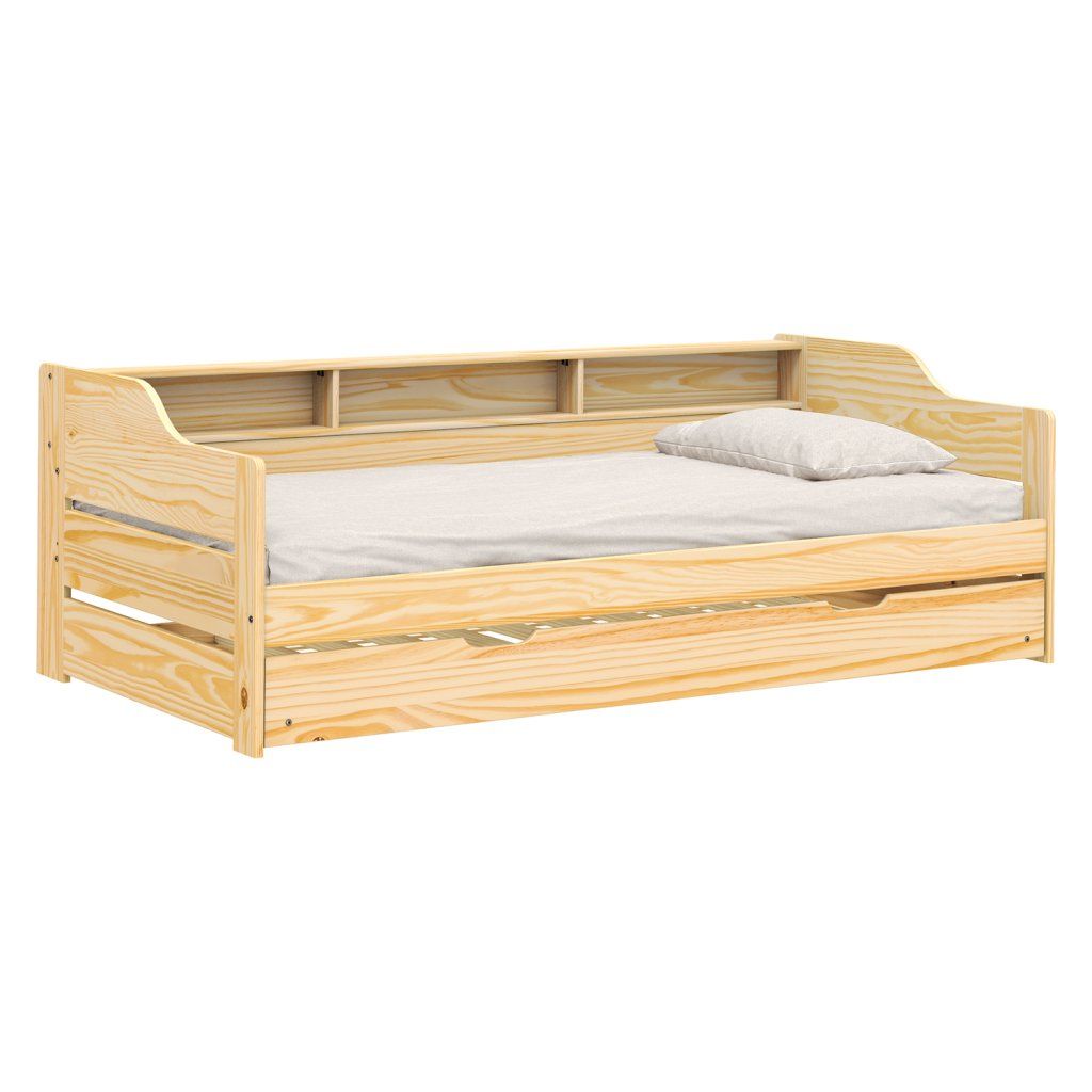 materiál masiv borovice, lakované provedení v zadní části otevřená police, v dolní části výsuvná přistýlka cena včetně roštů (dřevěné laťkové), matrace nejsou v ceně doporučená výška matrace pro přistýlku 10 cm doporučený rozměr matrací 90 × 200 cmDoplňkové parametry