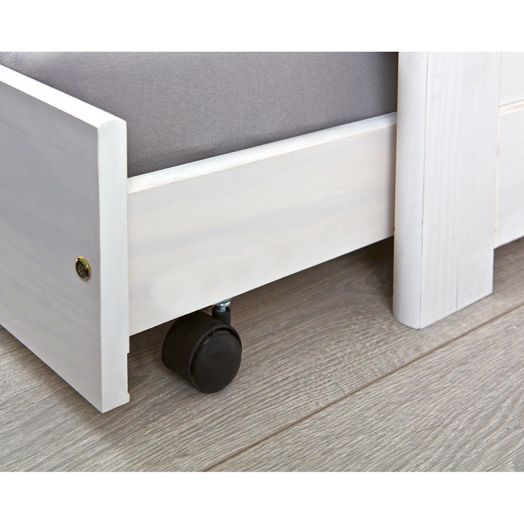 materiál masiv borovice, barevné provedení bílý lak výška sedu postele 37 cm dřevěné laťkové rošty jsou v ceně, matrace nejsou v ceně výsuv možno využít jako úložný prostor nebo jako přistýlku doporučená výška matrace pro přistýlku 10 cm doporučený rozměr matrací 90 × 200 cm Leonie ID20900215Doplňkové parametry