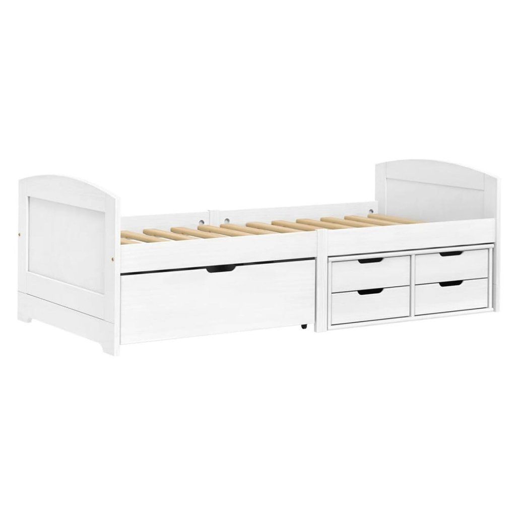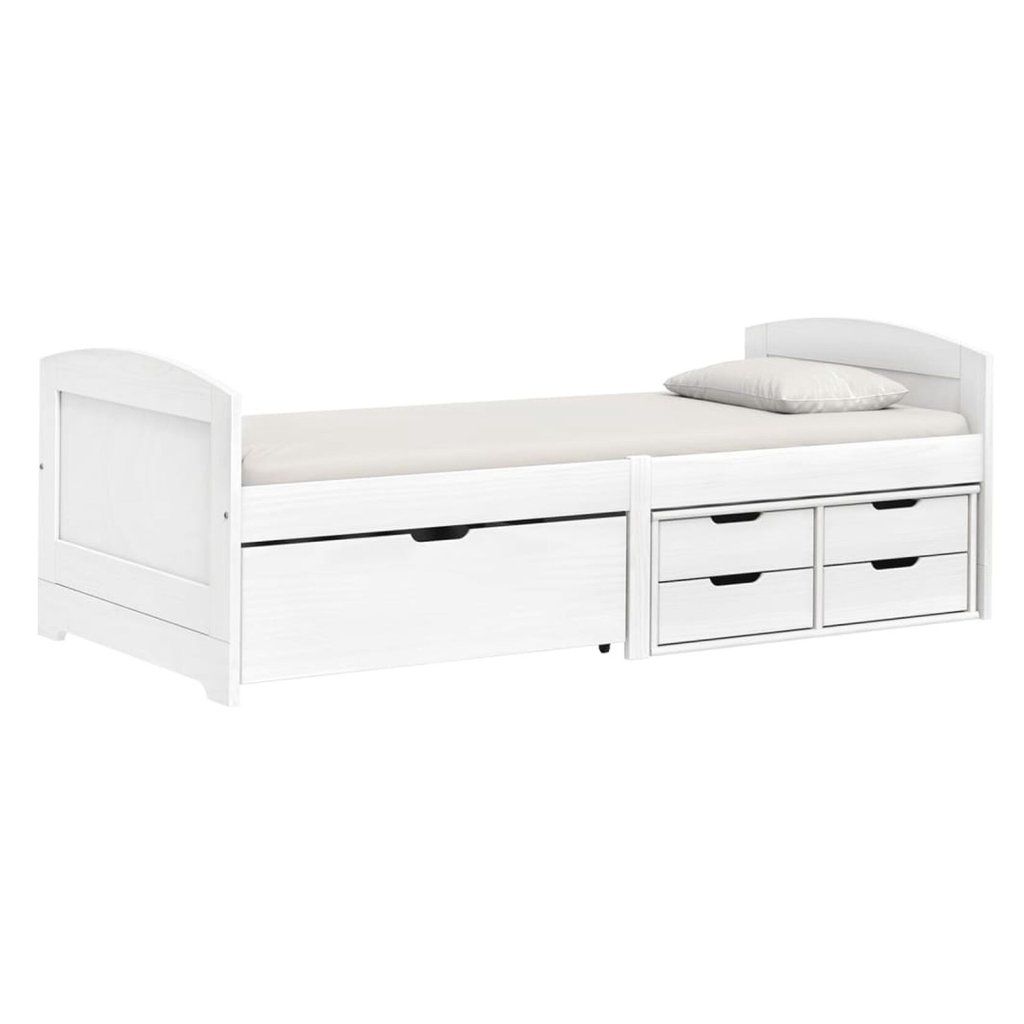 materiál masiv borovice, barevné provedení bílý lak praktické úložné prostory pod postelí (zásuvky) v ceně cena včetně roštu (dřevěný laťkový), matrace není v ceně doporučený rozměr matrace 90 × 200 cmDoplňkové parametry