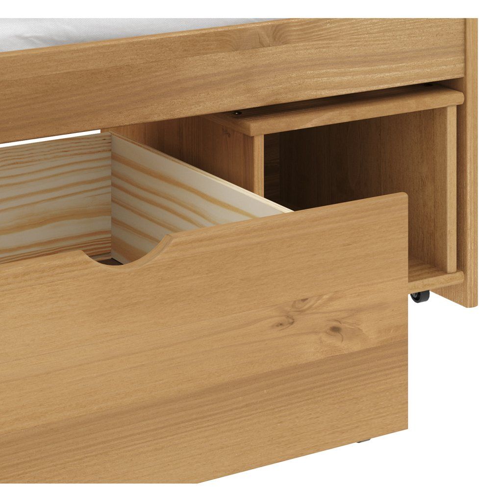 materiál masiv borovice, voskované provedení cena včetně roštu (dřevěný laťkový), matrace není v ceně doporučený rozměr matrace 90 × 200 cm (M2, M5, M9, M12, M24, M26) praktické úložné prostory pod postelí (5 zásuvek) v ceněDoplňkové parametry