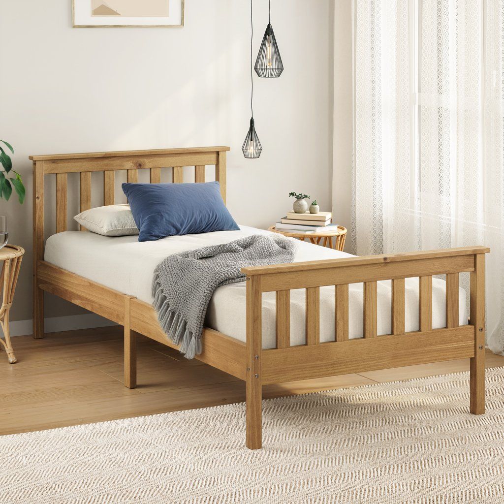 materiál masiv borovice, voskované provedení cena včetně roštu (dřevěný laťkový) bez matrace doporučený rozměr matrace 90 × 200 cmDoplňkové parametry