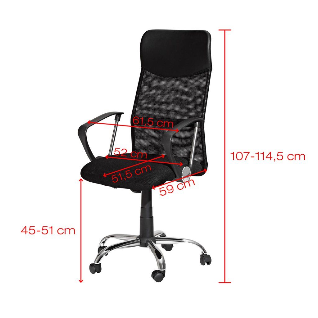 textilní potah, opěradlo textilní síťovina a kůže – imitace barevné provedení černá chromovaný kříž, houpací mechanismus výška sedu 45-51 cm doporučená nosnost do 120 kgDoplňkové parametry