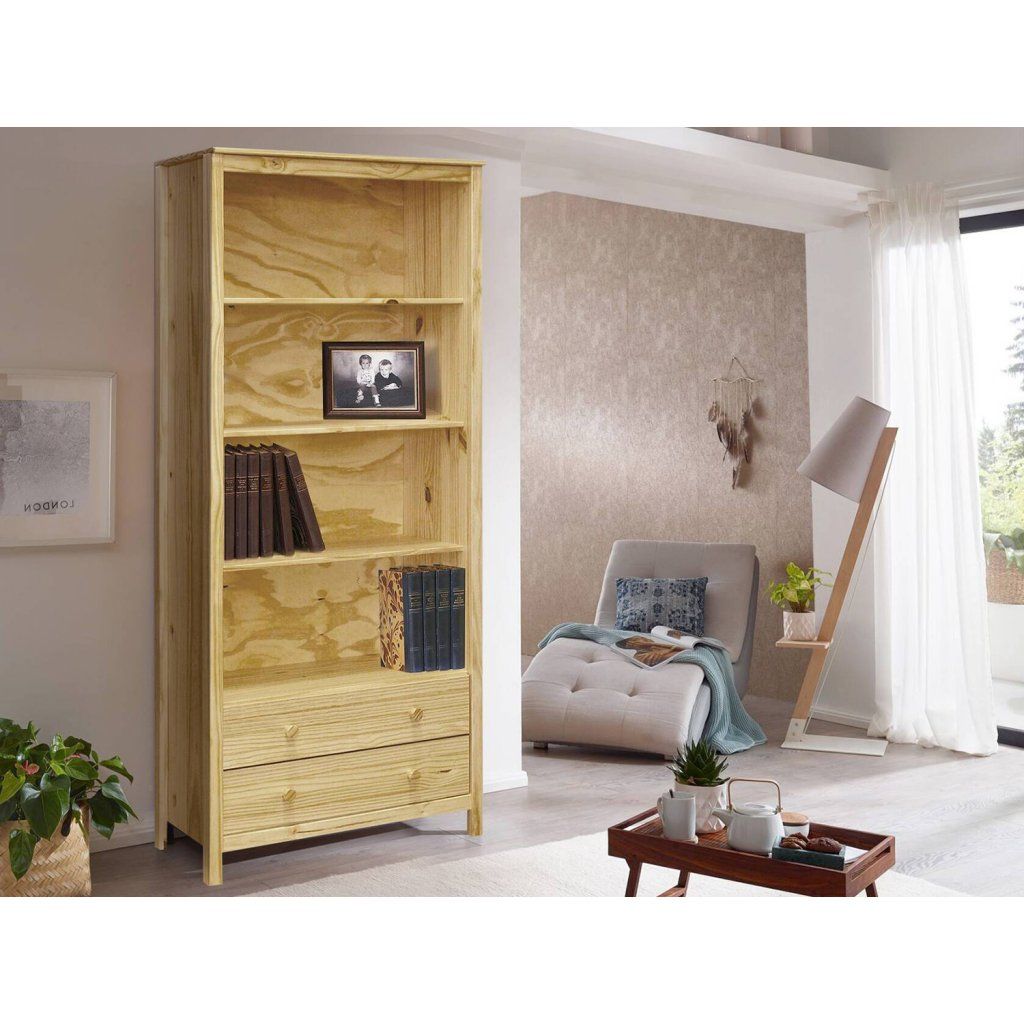 materiál masiv borovice, lakované provedení tři police, dvě zásuvky s kovovými pojezdyDoplňkové parametry
