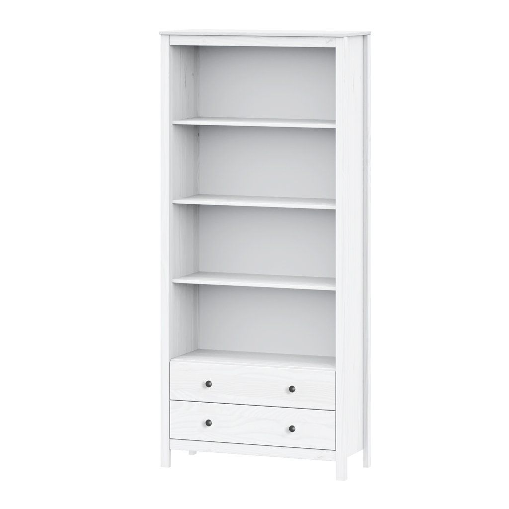 Knihovna 2 zásuvky TORINO bílá, kovové úchytky