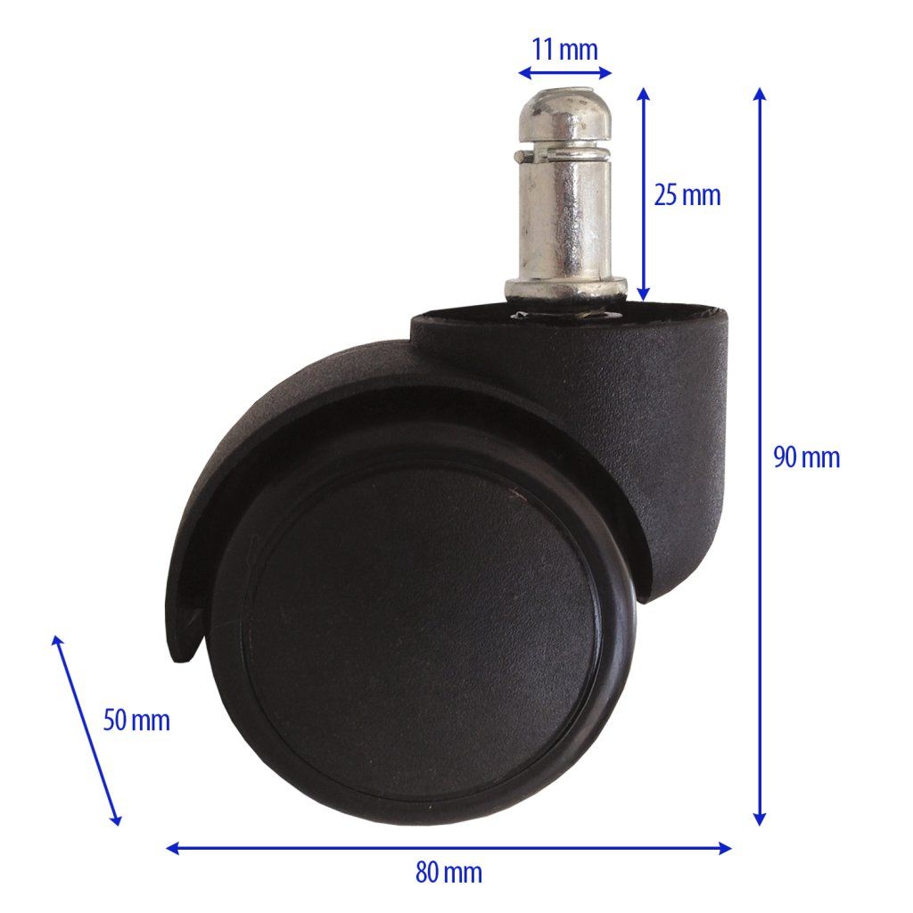 materiál PVC, barevné provedení černá sada obsahuje 5 kusů koleček vhodné pro většinu našich kancelářských židlí a křeselDoplňkové parametry