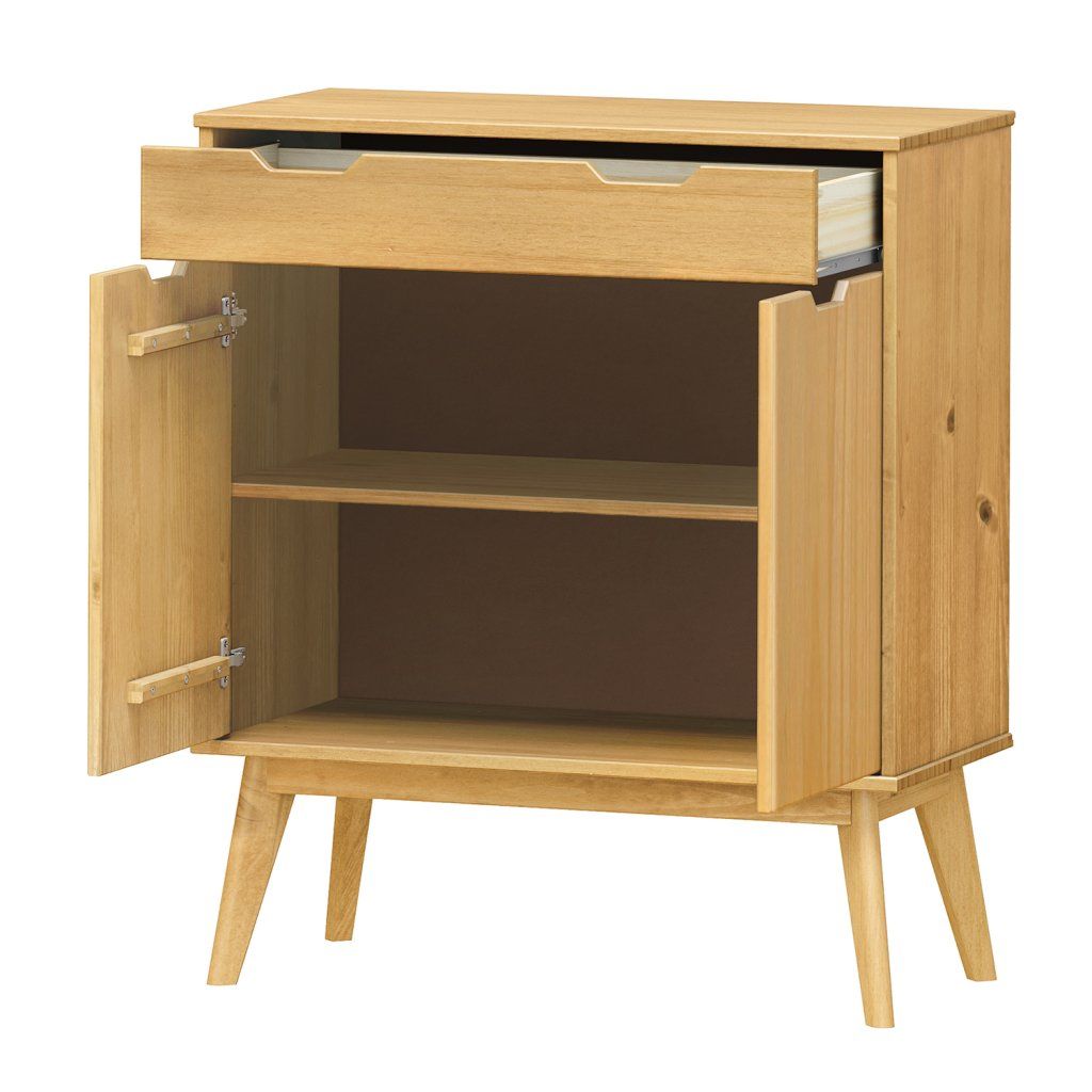 materiál masiv borovice voskovaná v medovém odstínu 1 zásuvka s kovovými pojezdy, 2 dvířka, 1 policeDoplňkové parametry
