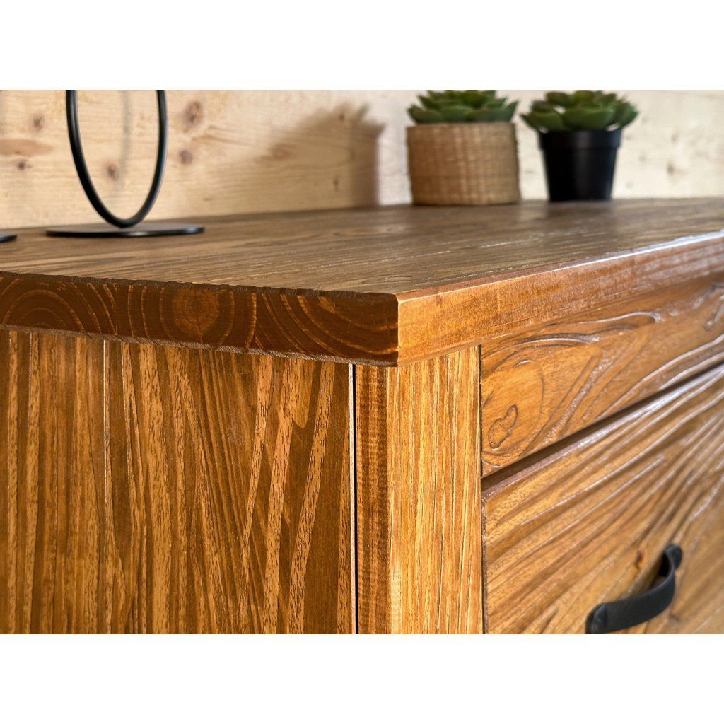 materiál masiv borovice, barevné provedení dub antik lakováno čirým lakem, vlis dřevěné struktury 2 dvířka, 2 police, 3 zásuvky součást sestavy EL DORADODoplňkové parametry