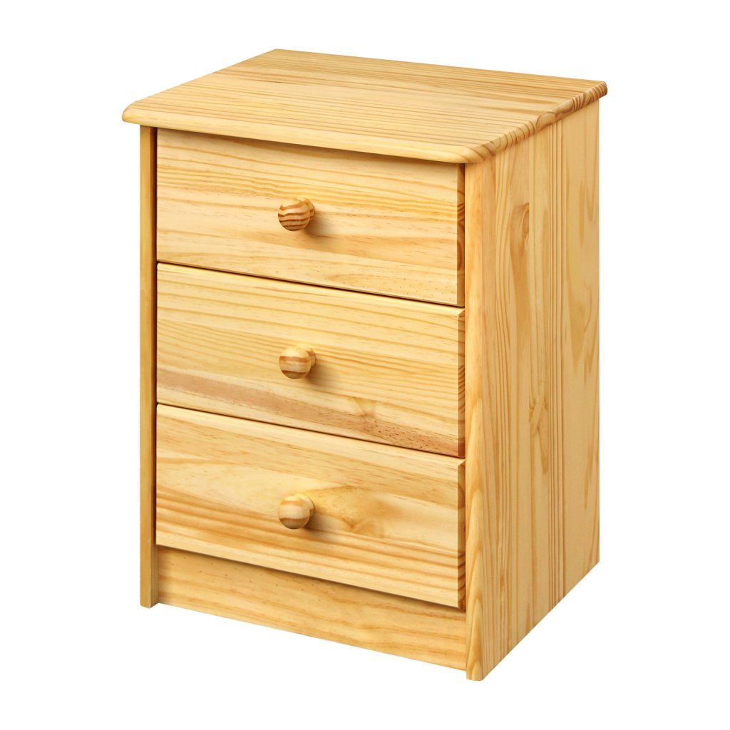materiál masiv borovice, lakované provedení 3 zásuvky s kovovými pojezdy, hloubka zásuvky 27,5 cm
