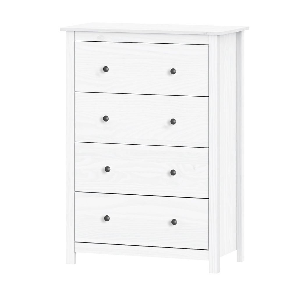 materiál masiv borovice, barevné provedení bílý lak kovové úchytky v barevném provedení černěná mosaz čtyři zásuvky s kovovými pojezdyDoplňkové parametry