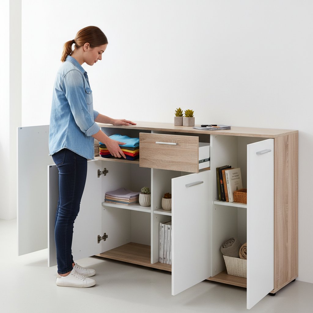 Komoda nabízí praktický úložný prostor pro věci, které chcete mít po ruce, ale ne na očích. Konkrétní členění (např. zásuvky a/nebo dvířka) závisí na provedení, obecně ale počítejte s přehledným uložením prádla, dokumentů, doplňků nebo drobností do domácnosti. Úchytky bývají řešené tak, aby působily nenápadně a ladily s moderním vzhledem; zároveň se komoda dobře používá i v běžném provozu.