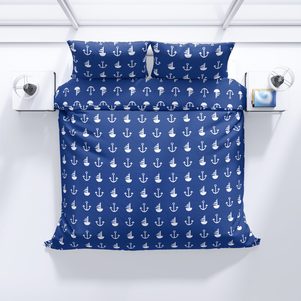 Krepové povlečení Modrá kotva 140x200, 70x90 cm