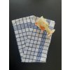 Savá bavlněná utěrka s károvaným vzorem v modré barvě. Opatřena je praktickým poutkem.