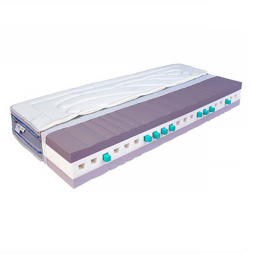 Matrace Meste Komfort od firmy Mabo disponuje unikátním a především funkčním systémem nastavení tuhosti. Doma si můžete jednoduše upravit tuhost povrchu otočením matrace a použitím visco pěny a navíc si snadno upravíte i tuhost středu jádra matrace podle svých potřeb.Velmi variabilní matrace Meste Komfort ze špičkové studené pěny 55kg/m³. Tato pěna je pro svou vysokou gramáž velmi stabilní a elastická. Matrace je díky této pěně velmi odolná a dlouhodobě nemění své vlastnosti, což je doloženo certifikátem z akreditované zkušebny. V matraci je dále vložena změkčující lehací vrstva z různých volitelných materiálů. Tato lehací vrstva vytváří příjemný povrch matrace a výrazně zlepšuje prodyšnost. Dostatečně prodyšná matrace zajišťuje optimální suché prostředí mezi povrchem matrace a pokožkou.Jak nastavit tuhost jádraRozepněte potah a separační úplet, v otvorech jsou vloženy zpevňovací hranoly (10 ks ve středu matrace Meste Komfort). Hranoly můžete přeskládat do otvorů, kde potřebujete matraci zpevnit. Doporučujeme vložit pod trup postavy, případně pokud vám vyhovuje, tak i pod boky. Ramenní oblast doporučujeme nechat měkčí. Pokud všechny hranoly vytáhnete, bude matrace nejměkčí a opačně, pokud všechny otvory zaplníte, bude matrace nejtužší. Přebytečné hranoly můžete vložit do krajů matrace pod chodidla a hlavu.Potah SilverPotah z třívrstvé pleteniny vysoké gramáže. Prodyšný potah s obsahem viskózy a stříbra, plošně prošitý 350g PES rounem a spodní pleteninou lacoste. Potah je díky obsahu viskózy velmi příjemný na omak a výborně absorbuje vlhkost. Stříbro působí proti bakteriím, udržuje potah čistý a bez zápachu. 3D mřížka po obvodu matrace zlepšuje cirkulaci vzduchu. Potah má čtyřstranný zip a je pratelný maximálně při 60°C.Doplňkové parametry