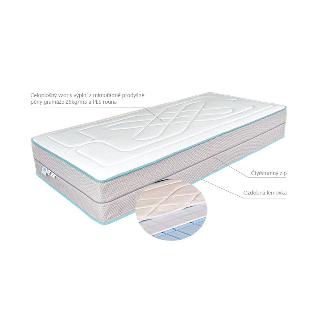 | Ložná plocha: | Antibakteriální pěna, Studená HR pěna |