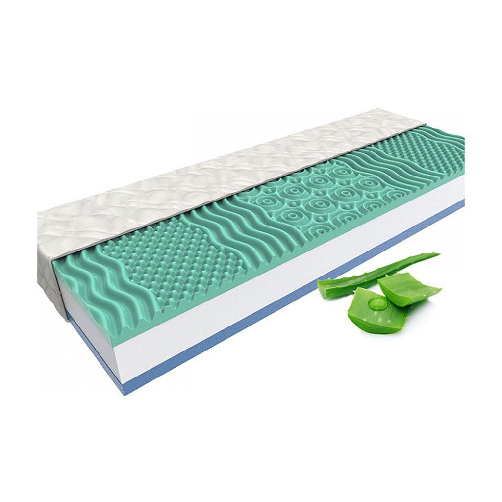 Ortopedická matrace Aloe Comfort 1+1 se 7 anatomickými zónami a nosností do 130 kg od tradičního čaského výrobce MPO má vynikající ortopedické vlastnosti. Silná vrstva kvalitní viscoelastické pěny zajistí dokonalé vnoření těla do matrace a výbornou oporu svalů a páteře. Je to modernější varianta ortopedické matrace 1+1 Memory Comfort doplněná o vrstvu paměťové pěny s extrakty z rostliny Aloe Vera. Aloe vera je hojně používaná v lékařství a kosmetice. Blahodárné účinky jsou známé celá tisíciletí.Silná vrstva kvalitní viscoelastické paměťové pěny zajistí dokonalé vnoření těla do matrace a zárověň výbornou oporu svalů a páteře. Je vhodná při bolestech zad, krční páteře a při problémech s bolestivostí kloubů. Druhá strana je rozdělena do 7 anatomických zón. Díky výšce 20 cm vyhovuje tato matrace například seniorům, protože umožňuje snadnější usedání i vstávání z lůžka.Výjimečná konstrukce matrace Aloe Comfort spočívá v rozdílných materiálech, a tím i tuhosti každé strany. Ty lze pak měnit podle osobních preferencí každého spáče nebo aktuálního zdravotního stavu. Všechny typy nabízených potahů k matraci Aloe Comfort jsou alergicky neutrální, dělitelné na půlky a tudíž snadno pratelné. Stačí si vybrat ten nejlepší pro vás, abyste se mohli těšit ze zdravého a posilujícího spánku každou noc.Jaký zvolit potah?Potah Medico – jedná se o velmi kvalitní a příjemnou strečovou látku, která je prošitá dutým vláknem. Tato látka zajistí maximální komfort a hygienu při spánku. Potah je opatřen děleným zipem pro snadnou údržbu, lze jej rozpůlit na dvě samostatné části a prát na 60°C.Potah Easy Clean – bílá strečová potahová látka je prošitá vrstvou PES rouna. Potah je příjemně měkký, čímž zvyšuje komfort ležení. Je také opatřen děleným zipem pro snadnou údržbu, lze jej rozpůlit na dvě samostatné části a prát i v menší pračce na 60°C, je také alergicky neutrální.Potah Aloe Vera – Látka potahu je prošitá vrstvou PES rouna. Do vláken potahové látky jsou vetkány výtažky z rostliny Aloe Vera, které mají antibakteriální účinky a zároveň posilňují relaxační efekt spánku. Jedná se o funkční potah, který je vhodný pro osoby trpící nadměrnou potivostí. Potah je opatřen zipem pro snadnou manipulaci a s možností rozdělit potah na 2 části a prát i v menší pračce na 60°C.Potah Bamboo – Díky potahu Bamboo s vysokým podílem přírodní viskozy matrace výborně reguluje vlhkost. Potah je pratelný až na 60 °C a opatřený děleným zipem pro snadné praní. Složení: 49% viskóza 51% polyester Prošev: 100% polyester.Potah Health Care – jedná se o vodonepropustný froté potah, který ochrání matraci před protečením tekutin. Tento potah zároveň propustí vodní páru, a tak umožňuje matraci „dýchat“. Matracový potah je velmi diskrétní, opatřený zipem. Může se vyvařovat a prát až na 95°C, je také alergicky neutrální.Potah Silver Active – jedná se o luxusní matracový potah s obsahem molekul stříbra, které zamezují tvorbě škodlivých bakterií. Kromě prevence vzniku plísní má také schopnost zabraňovat vzniku nepříjemného zápachu. Tento potah je prošit sedmidutinovým vláknem s výbornou tepelnou izolací. Je také opatřen děleným zipem pro snadnou údržbu, lze jej rozpůlit na dvě samostatné části a prát i v menší pračce na 60°C.Doplňkové parametry
