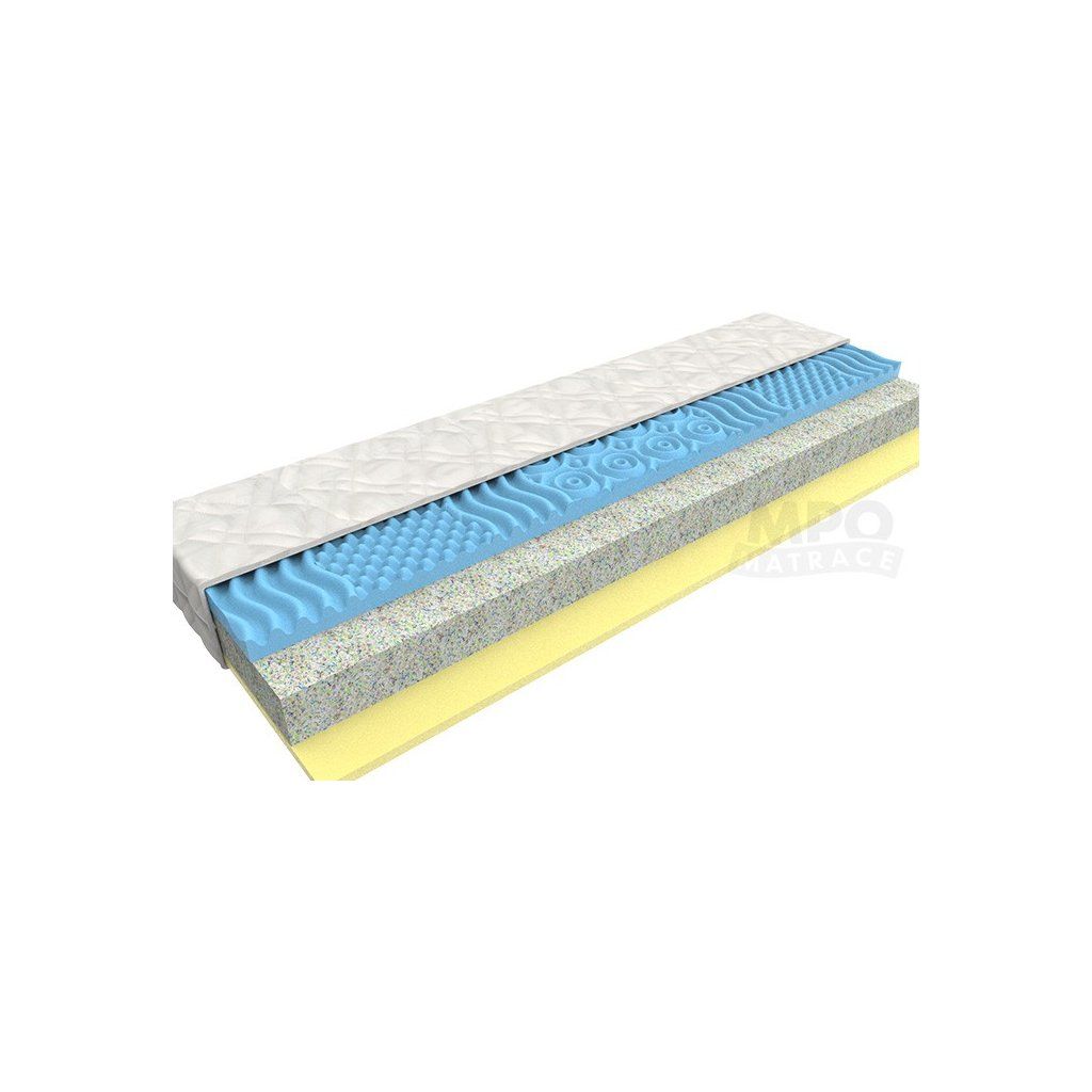 Partnerská matrace MPO Dita s nosností 120 kg a výškou 16 cm poslouží všem, kteří mají bolavá záda a klouby. Zajišťuje pohodlí na břichu, na boku i na zádech, po celou dobu spánku, který vás skutečně občerství. Pouhým otočením matrace můžete volit ze dvou tuhostí. Matrace Dita je zkonstruovaná pro zvýšenou zátěž. Její střed z rekonstituované PUR pěny zajišťuje vysokou životnost a nosnost. Vrstva visco elastické pěny na jedné straně matrace zvyšuje komfort ležení. Profilovaná vrstva z tepelně modifikované kvalitní PUR pěny na druhé straně má 7 anatomických zón: pro hlavu a krk, ramenní změkčení, pozvolný přechod, zpevnění pro boky a střední část těla, další přechod, kolena a stehna, lýtka a chodidla. Ideálním podkladem matrace Dita je rošt nebo pevná podložka.Jaký zvolit potah?Potah Medico – jedná se o velmi kvalitní a příjemnou strečovou látku, která je prošitá dutým vláknem. Tato látka zajistí maximální komfort a hygienu při spánku. Potah je opatřen děleným zipem pro snadnou údržbu, lze jej rozpůlit na dvě samostatné části a prát na 60°C.Potah Easy Clean – bílá strečová potahová látka je prošitá vrstvou PES rouna. Potah je příjemně měkký, čímž zvyšuje komfort ležení. Je také opatřen děleným zipem pro snadnou údržbu, lze jej rozpůlit na dvě samostatné části a prát i v menší pračce na 60°C, je také alergicky neutrální.Potah Aloe Vera – Látka potahu je prošitá vrstvou PES rouna. Do vláken potahové látky jsou vetkány výtažky z rostliny Aloe Vera, které mají antibakteriální účinky a zároveň posilňují relaxační efekt spánku. Jedná se o funkční potah, který je vhodný pro osoby trpící nadměrnou potivostí. Potah je opatřen zipem pro snadnou manipulaci a s možností rozdělit potah na 2 části a prát i v menší pračce na 60°C.Potah Bamboo – Díky potahu Bamboo s vysokým podílem přírodní viskozy matrace výborně reguluje vlhkost. Potah je pratelný až na 60 °C a opatřený děleným zipem pro snadné praní. Složení: 49% viskóza 51% polyester Prošev: 100% polyester.Potah Health Care – jedná se o vodonepropustný froté potah, který ochrání matraci před protečením tekutin. Tento potah zároveň propustí vodní páru, a tak umožňuje matraci „dýchat“. Matracový potah je velmi diskrétní, opatřený zipem. Může se vyvařovat a prát až na 95°C, je také alergicky neutrální.Potah Silver Active – jedná se o luxusní matracový potah s obsahem molekul stříbra, které zamezují tvorbě škodlivých bakterií. Kromě prevence vzniku plísní má také schopnost zabraňovat vzniku nepříjemného zápachu. Tento potah je prošit sedmidutinovým vláknem s výbornou tepelnou izolací. Je také opatřen děleným zipem pro snadnou údržbu, lze jej rozpůlit na dvě samostatné části a prát i v menší pračce na 60°C.Doplňkové parametry