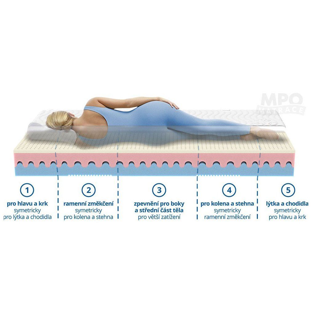 Velmi příjemná a vzdušná partnerská matrace Hevea od českého výrobce MPO. Hřebenovitě do sebe zapadající pěny zajistí vysoký komfort ležení ve všech polohách. Vrstva vertikálně perforovaného latexu komfort ještě zvyšuje a přírodní latex spolehlivě zahubí všechny jednoduché mikroorganismy, jako bakterie, kterými se živí roztoči a plísně.Jaký zvolit potah?Potah Medico – jedná se o velmi kvalitní a příjemnou strečovou látku, která je prošitá dutým vláknem. Tato látka zajistí maximální komfort a hygienu při spánku. Potah je opatřen děleným zipem pro snadnou údržbu, lze jej rozpůlit na dvě samostatné části a prát na 60°C.Potah Easy Clean – bílá strečová potahová látka je prošitá vrstvou PES rouna. Potah je příjemně měkký, čímž zvyšuje komfort ležení. Je také opatřen děleným zipem pro snadnou údržbu, lze jej rozpůlit na dvě samostatné části a prát i v menší pračce na 60°C, je také alergicky neutrální.Potah Aloe Vera – Látka potahu je prošitá vrstvou PES rouna. Do vláken potahové látky jsou vetkány výtažky z rostliny Aloe Vera, které mají antibakteriální účinky a zároveň posilňují relaxační efekt spánku. Jedná se o funkční potah, který je vhodný pro osoby trpící nadměrnou potivostí. Potah je opatřen zipem pro snadnou manipulaci a s možností rozdělit potah na 2 části a prát i v menší pračce na 60°C.Potah Bamboo – Díky potahu Bamboo s vysokým podílem přírodní viskozy matrace výborně reguluje vlhkost. Potah je pratelný až na 60 °C a opatřený děleným zipem pro snadné praní. Složení: 49% viskóza 51% polyester Prošev: 100% polyester.Potah Health Care – jedná se o vodonepropustný froté potah, který ochrání matraci před protečením tekutin. Tento potah zároveň propustí vodní páru, a tak umožňuje matraci „dýchat“. Matracový potah je velmi diskrétní, opatřený zipem. Může se vyvařovat a prát až na 95°C, je také alergicky neutrální.Potah Silver Active – jedná se o luxusní matracový potah s obsahem molekul stříbra, které zamezují tvorbě škodlivých bakterií. Kromě prevence vzniku plísní má také schopnost zabraňovat vzniku nepříjemného zápachu. Tento potah je prošit sedmidutinovým vláknem s výbornou tepelnou izolací. Je také opatřen děleným zipem pro snadnou údržbu, lze jej rozpůlit na dvě samostatné části a prát i v menší pračce na 60°C.Doplňkové parametry