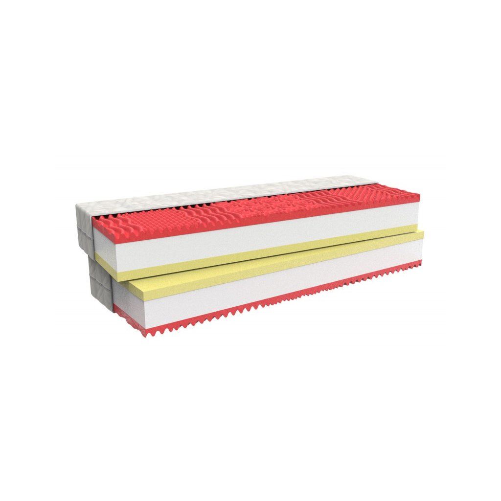 7-zónová partnerská matrace Memory Comfort je vysoká 20 cm a má vynikající ortopedické vlastnosti. Je zdravotní, takže je vhodná pro osoby s bolestmi zad a kloubů. Matrace Memory Comfort je tvořena různě tuhými Visco a PUR pěnami, proto je vhodná jako partnerská matrace, kdy si každý si zvolí lépe vyhovující tuhost. Za uvedenou cenu obdržíte dvě matrace a dva polštářky. Jak je produkt Ortopedická matrace 1+1 MEMORY COMFORT vyrobena? Matrace Memory Comfort 1+1 se 7 anatomickými zónami a nosností 120 kg má vynikající ortopedické vlastnosti. Silná vrstva kvalitní viscoelastické pěny zajistí dokonalé vnoření těla do matrace a výbornou oporu svalů a páteře. Je vhodná při bolestech zad, krční páteře a při problémech s bolestivostí kloubů. Druhá strana z tepelně modifikované PUR pěny je rozdělena do 7 anatomických zón. Díky výšce 20 cm vyhovuje tato matrace například seniorům, protože umožňuje snadnější usedání i vstávání. Výjimečná konstrukce matrace Memory Comfort spočívá v rozdílných materiálech, a tím i tuhosti každé strany. Ty lze pak měnit podle nálady nebo aktuálního zdravotního stavu. Všechny typy nabízených potahů k matraci Memory Comfort jsou alergicky neutrální a pratelné. Stačí si vybrat ten nejlepší pro vás, abyste se mohli těšit ze zdravého a posilujícího spánku po celou noc. Jaký zvolit potah? Potah Medico – jedná se o velmi kvalitní a příjemnou strečovou látku, která je prošitá dutým vláknem. Tato látka zajistí maximální komfort a hygienu při spánku. Potah je opatřen děleným zipem pro snadnou údržbu, lze jej rozpůlit na dvě samostatné části a prát na 60°C. Potah Easy Clean – bílá strečová potahová látka je prošitá vrstvou PES rouna. Potah je příjemně měkký, čímž zvyšuje komfort ležení. Je také opatřen děleným zipem pro snadnou údržbu, lze jej rozpůlit na dvě samostatné části a prát i v menší pračce na 60°C, je také alergicky neutrální. Potah Aloe Vera – Látka potahu je prošitá vrstvou PES rouna. Do vláken potahové látky jsou vetkány výtažky z rostliny Aloe Vera, které mají antibakteriální účinky a zároveň posilňují relaxační efekt spánku. Jedná se o funkční potah, který je vhodný pro osoby trpící nadměrnou potivostí. Potah je opatřen zipem pro snadnou manipulaci a s možností rozdělit potah na 2 části a prát i v menší pračce na 60°C. Potah Bamboo – Díky potahu Bamboo s vysokým podílem přírodní viskozy matrace výborně reguluje vlhkost. Potah je pratelný až na 60 °C a opatřený děleným zipem pro snadné praní. Složení: 49% viskóza 51% polyester Prošev: 100% polyester. Potah Health Care – jedná se o vodonepropustný froté potah, který ochrání matraci před protečením tekutin. Tento potah zároveň propustí vodní páru, a tak umožňuje matraci „dýchat“. Matracový potah je velmi diskrétní, opatřený zipem. Může se vyvařovat a prát až na 95°C, je také alergicky neutrální. Potah Silver Active – jedná se o luxusní matracový potah s obsahem molekul stříbra, které zamezují tvorbě škodlivých bakterií. Kromě prevence vzniku plísní má také schopnost zabraňovat vzniku nepříjemného zápachu. Tento potah je prošit sedmidutinovým vláknem s výbornou tepelnou izolací. Je také opatřen děleným zipem pro snadnou údržbu, lze jej rozpůlit na dvě samostatné části a prát i v menší pračce na 60°C.Doplňkové parametry