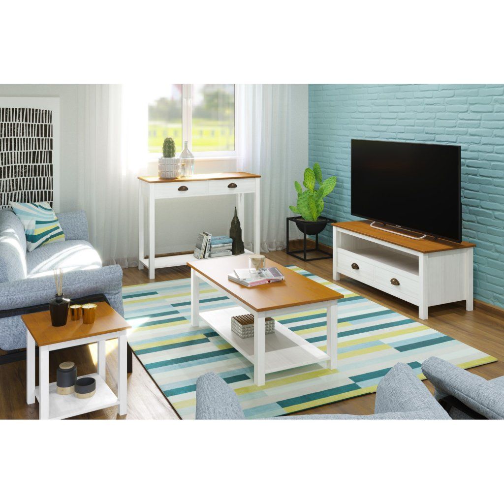materiál masiv borovice, barevné provedení bílý / hnědý lak dvě zásuvky s kovovými úchytkami a pojezdy, jedna policeDoplňkové parametry