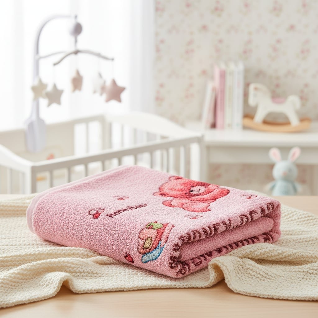 Osuška Medvídek je vyrobená z froté. Je velice příjemná na dotek.