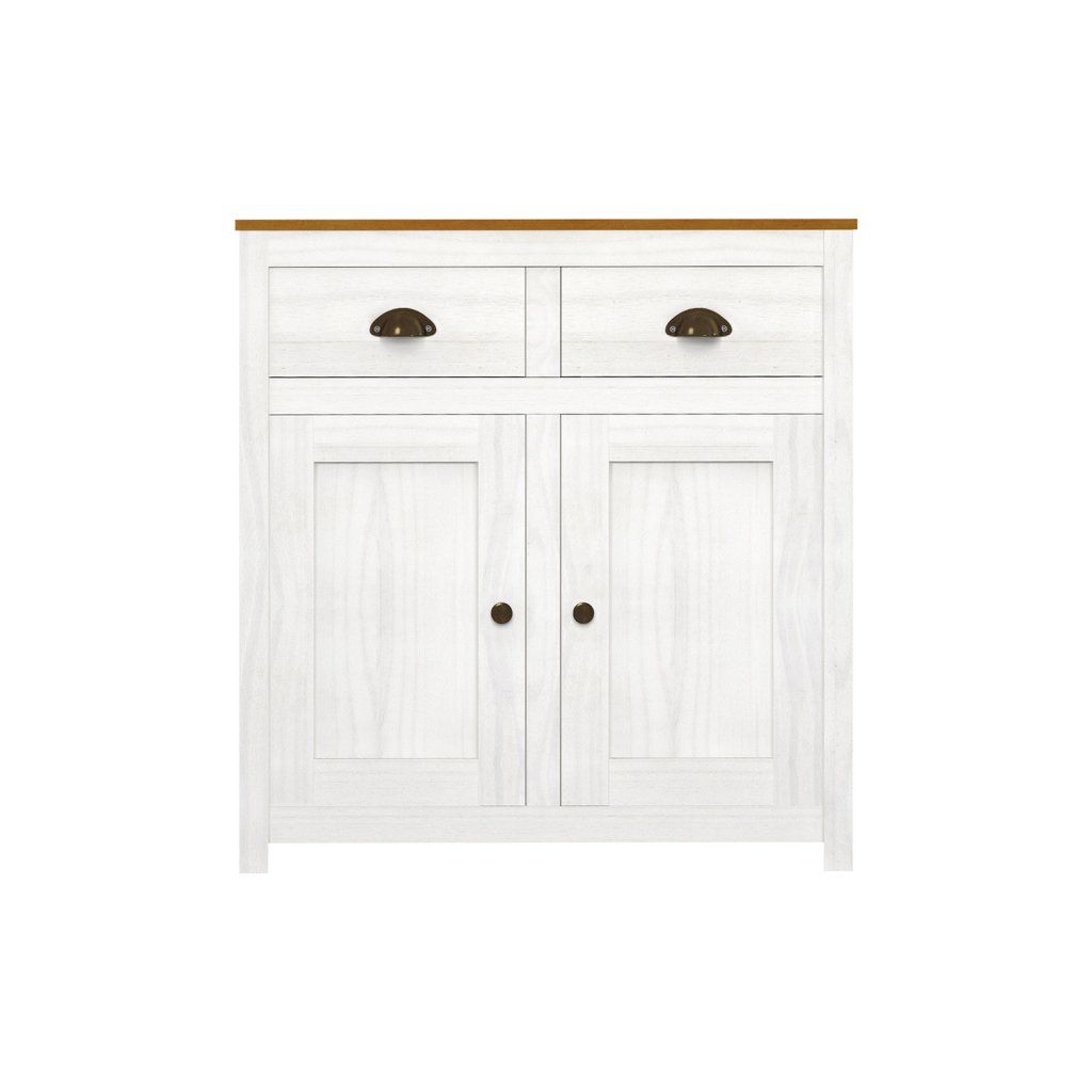 materiál masiv borovice, barevné provedení bílý / hnědý lak 2 zásuvky s kovovými úchytkami a pojezdy, 2 dveřeDoplňkové parametry